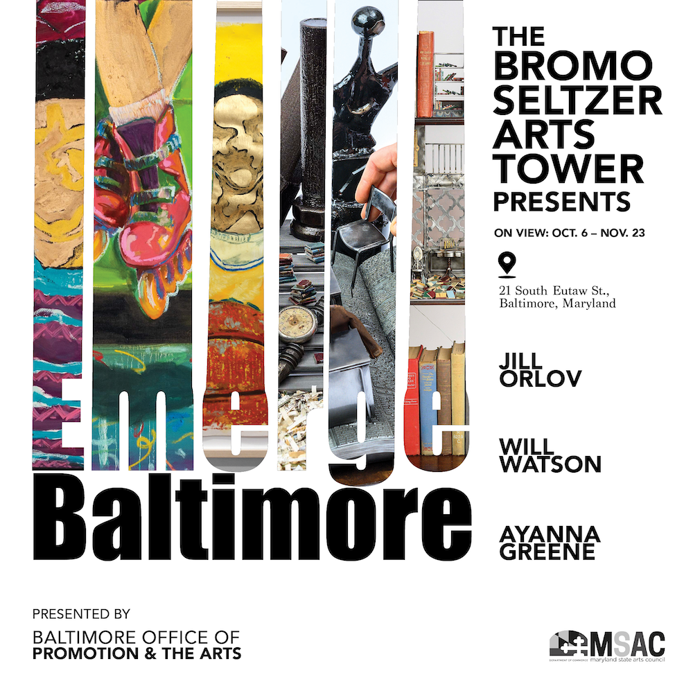 This trio of artists showcases the diversity — in medium, process, and product — of Baltimore City artists and highlights the bold, modern, and expressive vision of our creative community. Shannon-Butts says, “My goal is to make the Bromo Arts Tower the art epicenter of the burgeoning Bromo Arts District. It is important to curate this kind of space and provide a platform for the best and brightest emerging talents in all disciplines to tell their version of the American story thoughtfully and artistically. I see the Bromo Seltzer Arts Tower as the new home for Baltimore’s most promising up-and-coming creative voices. The reception of Emerge Baltimore has been remarkable and will return next year with a fresh coterie of artists.”