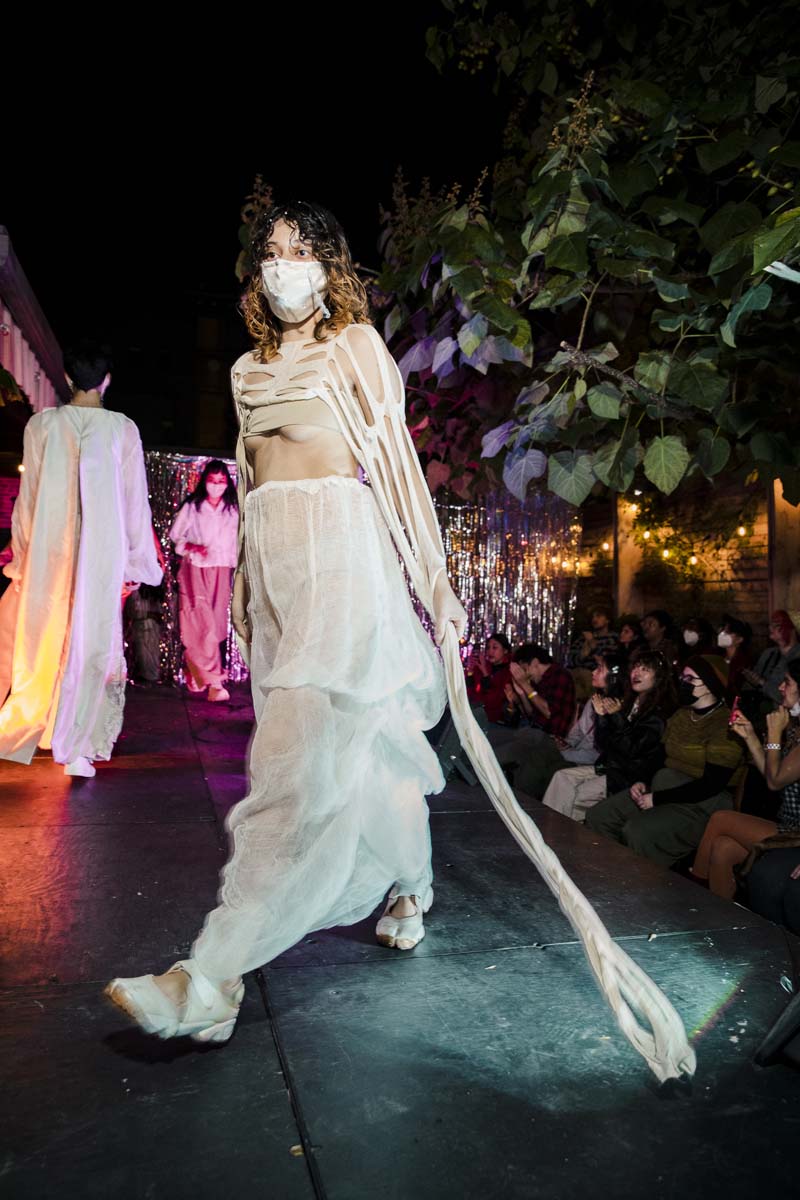 Current Space’s epic experimental fashion show Fantasy Machine returned last Saturday for its sold-out fourth edition. Organized and curated by participating designer Meg Beck, the event featured collections by Jay Sanborn, Bokeum Jeon, Lorra Clara, Aszana, flowernames, Hendricks, and Pony.