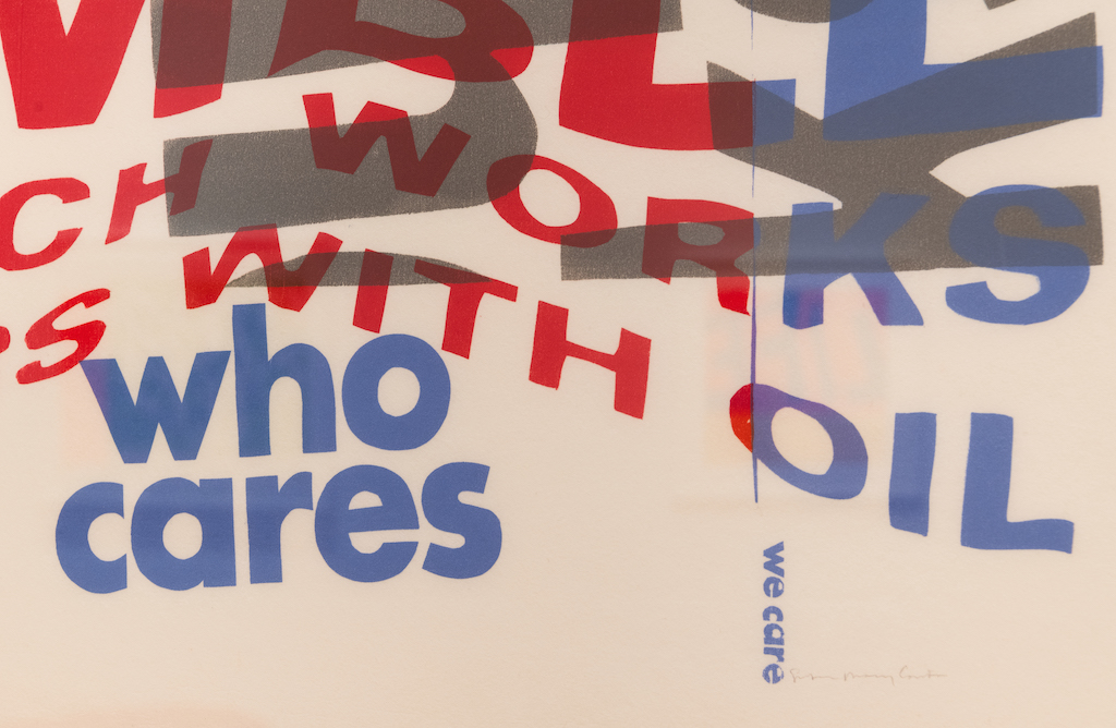 [Ed. Note: To complement the Kent show, Ebstein invited R.L. Tillman to create a text-based body of work.] [Tillman’s] concept is clever without it falling flat. It approaches the subject and lets it land on its own. The installation of the show in Rosenberg Gallery is meant to be more organic than Kent’s in Silber Gallery. Tillman decided to crumple one print from each series by soaking them and letting them dry differently, which alludes to what happens when posters are left out in the street. It’s an interesting gesture to talk about commerce and finance in a nonprofit space that has to confront the value of itself all the time.