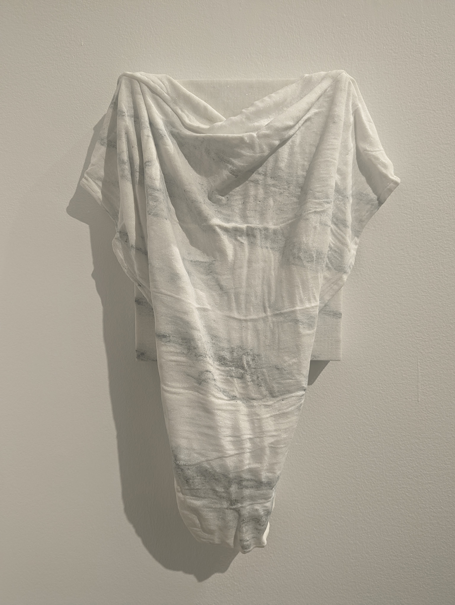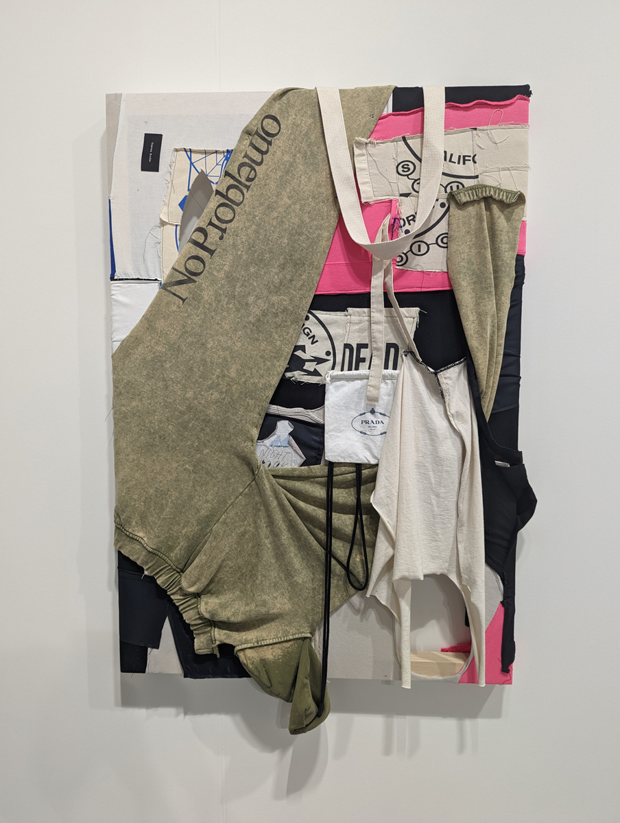 It’s a phenomenon that’s only accelerated since. This year, these surrogate allusions to the body had become so mainstream they were prominently featured in several of Art Basel’s (very excellently) curated sections. Leslie Martinez’s massive abstractions in the “Positions” section of the fair might look like impasto paint from a distance. But up close, I noticed much of their texture came from pants appliqued to the canvas!