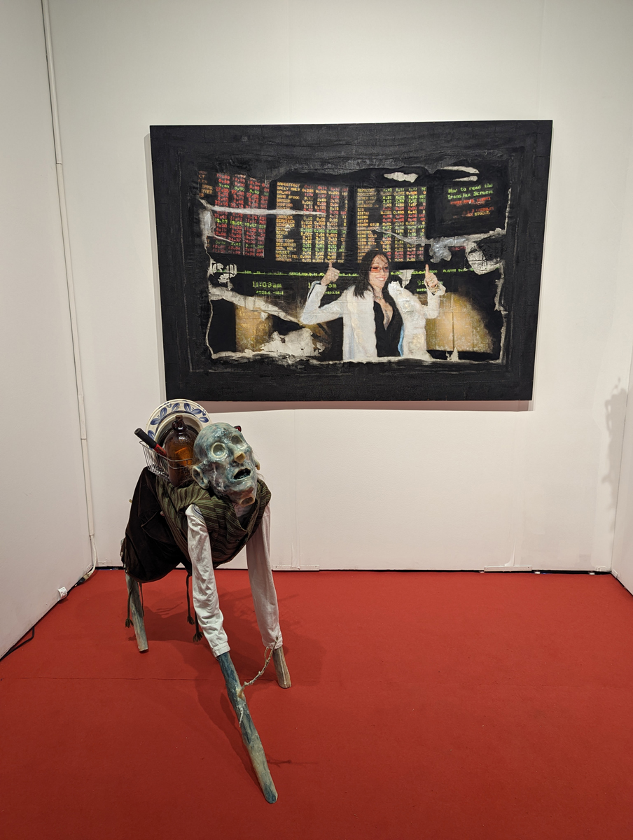 Rolf Nowotny sculpture and Valentina Vaccarella's painting of the "Hollywood Madame" Heidi Fleiss listing her escort service on the Australian stock exchange at New York based No Gallery's NADA booth.