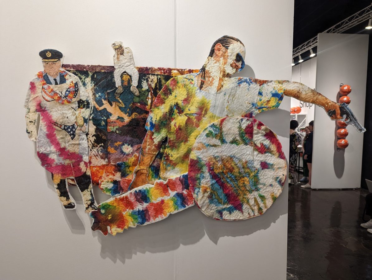 Thankfully, Zohore’s strangely seductive mixed-media paper towel paintings were also on view at NADA in Jupiter Contemporary’s booth. His collaged pop-culture detritus and tie-dye like abstractions play so well with their medium—paper towels speak to labor, fragility, ubiquity, stains, and consumption. I imagine a future conservator at whatever art museum that’s bound to acquire one of these some day both cursing his process even as they wonder at it.