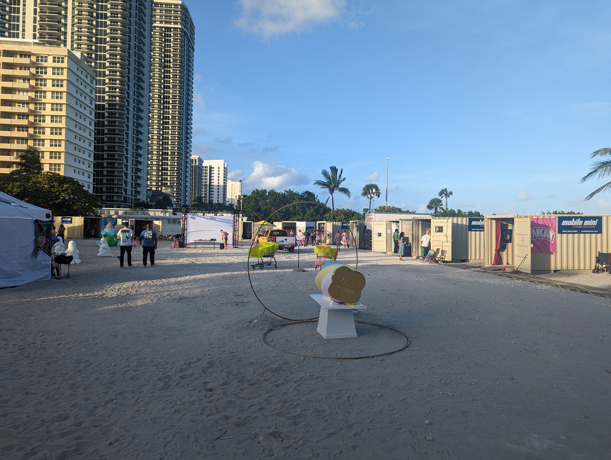 This year, however, it continually got bumped down my triage list as I repeatedly confronted the realization that most of the performances I wanted to see (really the lifeblood of Satellite) would be nearly-ending by the time I made it up the infuriating traffic slog of Collins Avenue. When I finally did make it through the gridlock gauntlet of hundreds of Ubers depositing single riders along the chain of the same five hotels literally in a straight line (take the damn trolley, people!) I had only enough time to breeze through the fair’s beachfront shipping containers before turning around for the commute back south to a dinner obligation.