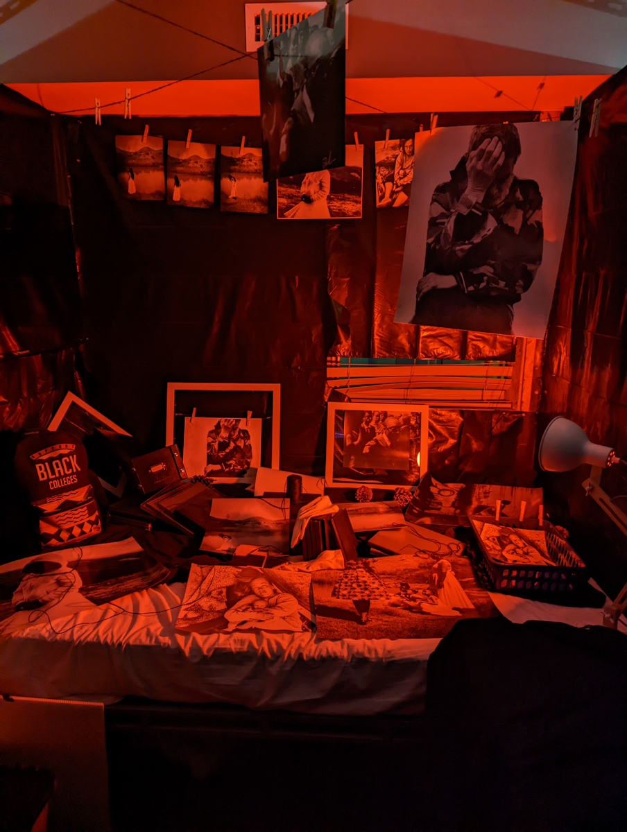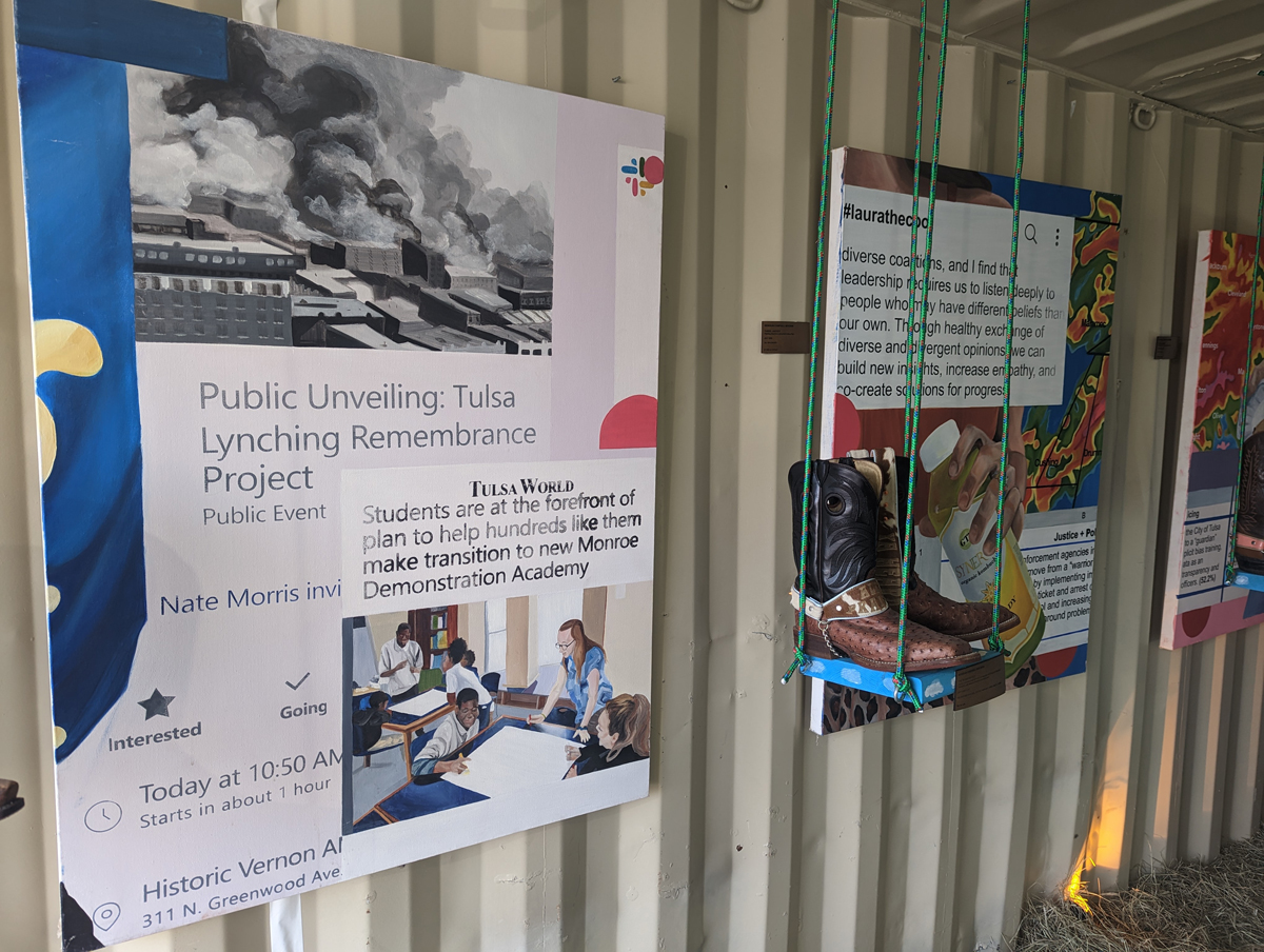 That’s a shame, because I think Satellite and its DIY spirit offer something unique. The fair is pretty nimble and distinct in each iteration, and this year was a mixed bag. There were some truly great exhibitions, such as Rebekah Campbell McIlwain’s installation exploring midwestern identity and politics through objects such as custom cowboy boots and tense paintings featuring details like screen captures of Slack meetings about community development, policing, and racial justice.