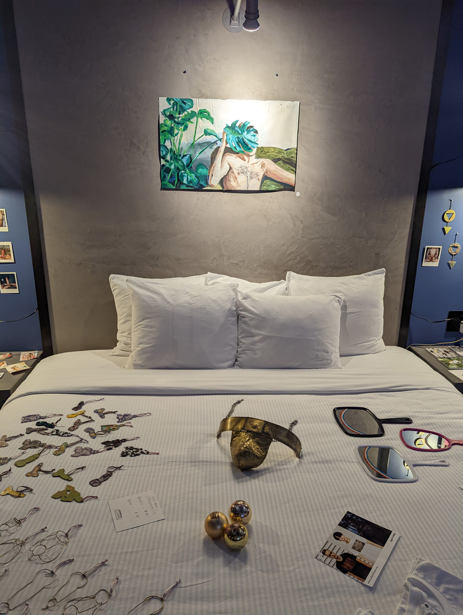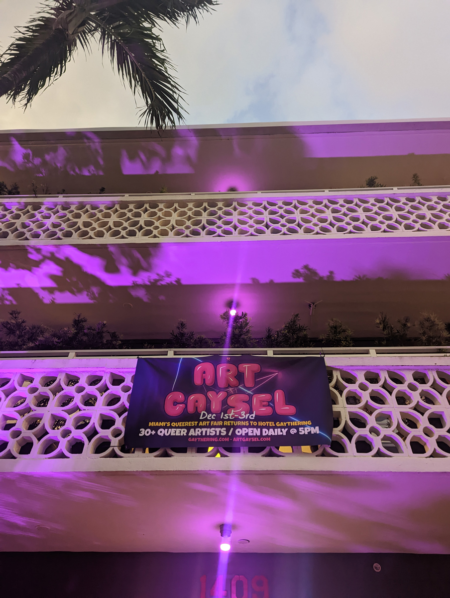 I think Art Gaysel represented a Miami Art Week experience I’ve been nostalgic for: the accessibly-scaled (and priced) hotel fair walking distance from the Convention Center. Smartly, the fair opened daily from 5 pm to midnight, so the participating artists and galleries had time to see other fairs before opening their rooms to the public, just as South Beach’s post-fair circuit of dinners and nightlife began, and still had time to party and sleep off their hangovers. The timing, price-points, and intimacy of the setting gave the fair the kind of festive, “anything is possible,” low-stress vibe I used to love about the activities swirling in the fringes of ABMB’s orbit. And at a time when queer spaces are coming under attack, it also felt sharply relevant.