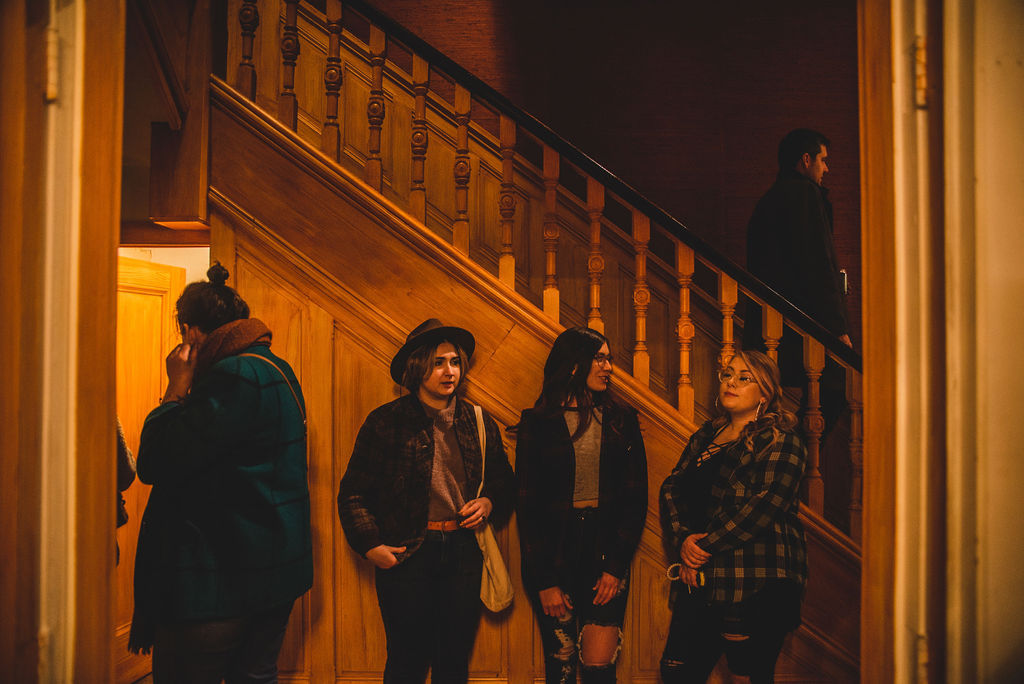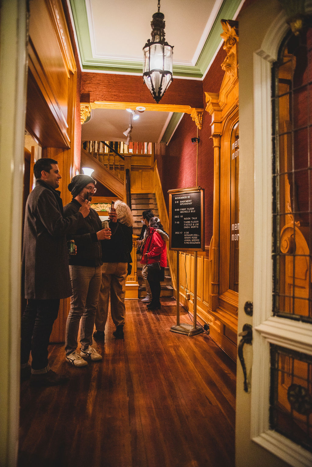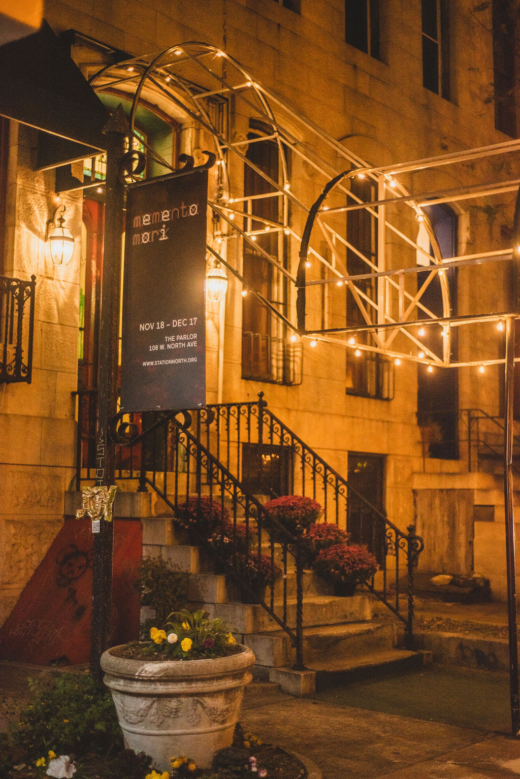 Station North’s newest art venue opened to enthusiastic crowds on Friday, November 18 in a large brownstone that operated as a funeral home from 1914 through 2006. The building at 108 W. North Avenue has now been christened The Parlor by new owner John Renner, who plans to renovate the space in the future to include artist studios and a restaurant.