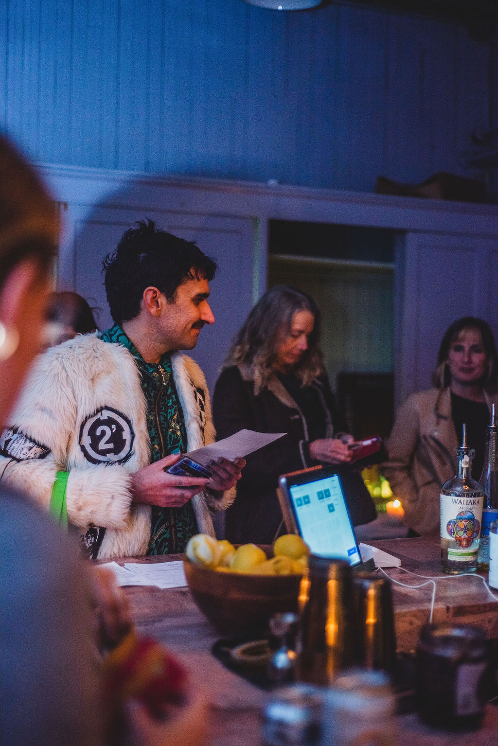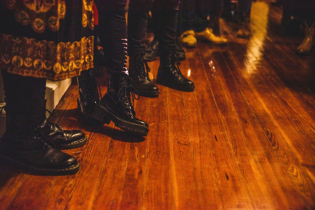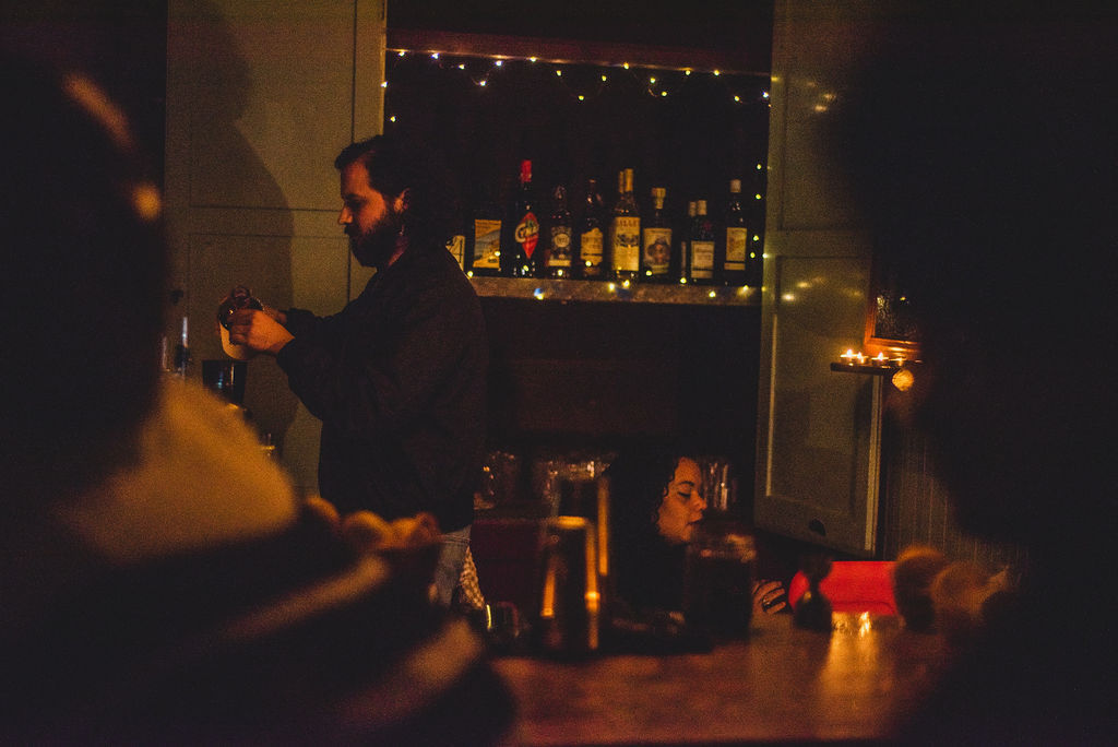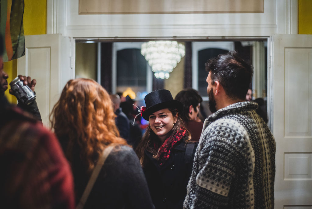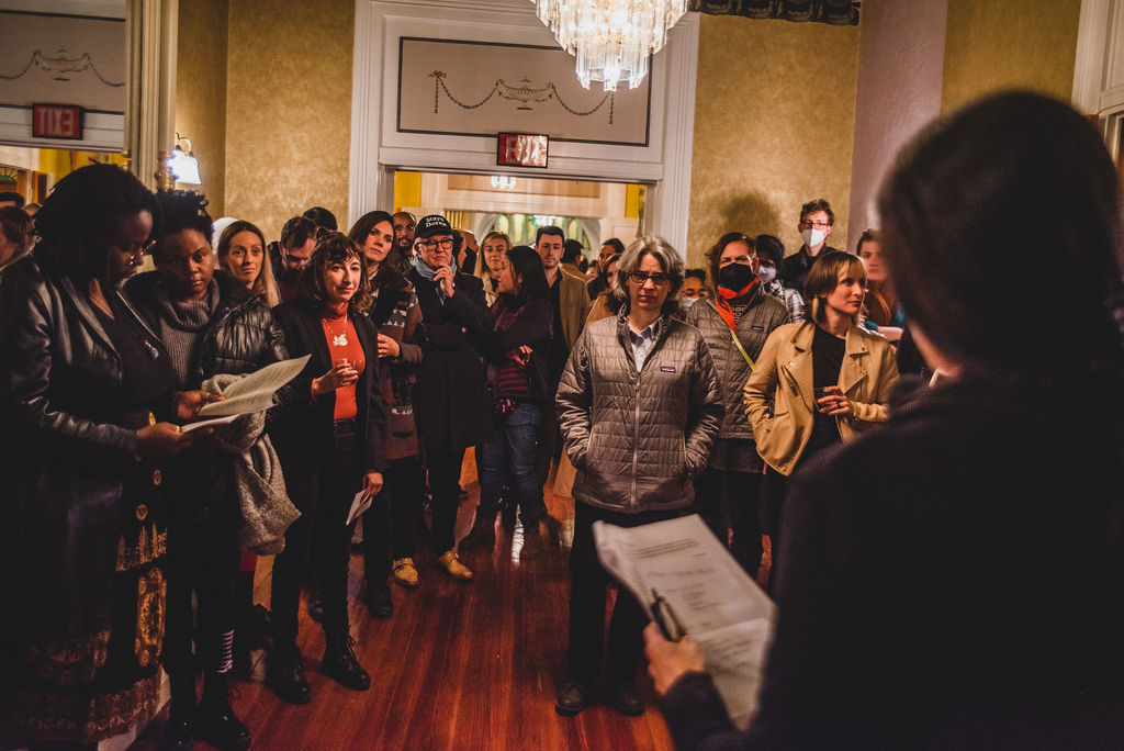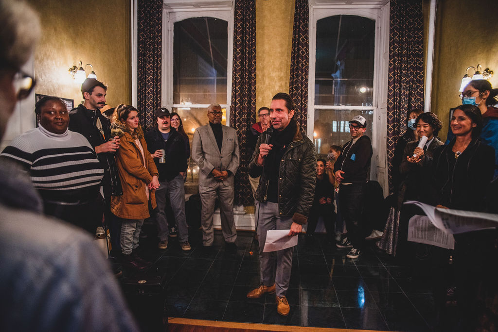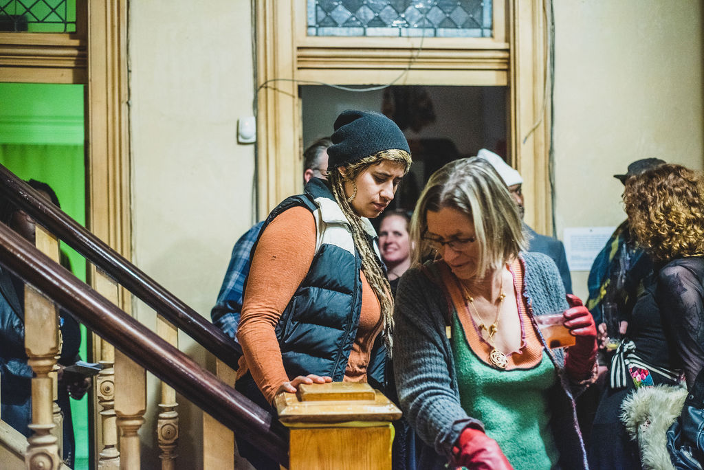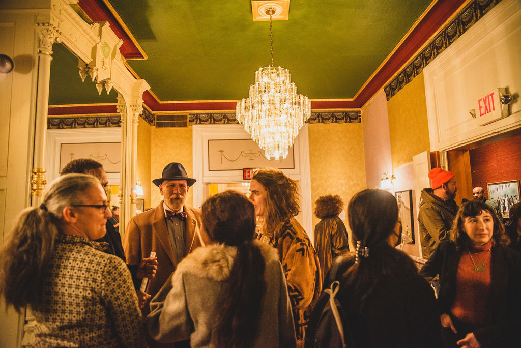 Opening night featured performances by Michele Blu, Carrie Fucile, and Brenton Lim. A closing reception is planned for December 17 with performances by Konjor Collective: Bashi Rose, Jamal Moore, and King Solomon. The closing will feature the return of the basement speakeasy bar, which served cocktails on opening night from No Land Beyond, a boardgame bar located up the block, with mixologist Ciara Newton.