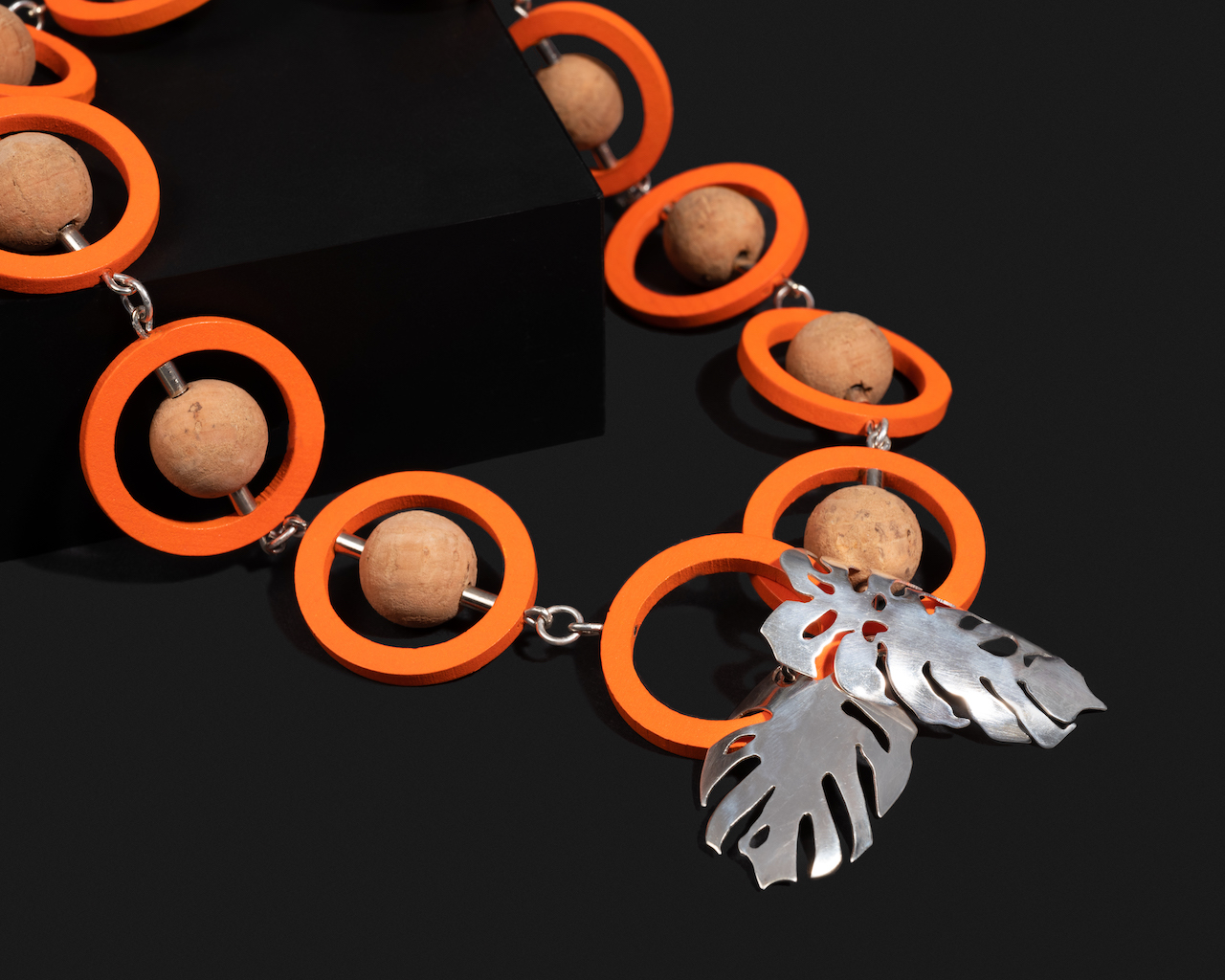 Beth Payne teaches art in Baltimore County public schools and has been creating jewelry as a creative outlet for many years. She recently participated in the BJC’s jewelry production class where she focused on renewable and sustainable materials to develop this limited production line. Payne designed these pieces with an emphasis on movement and tactility that the wearer can play with if anxious or stressed.