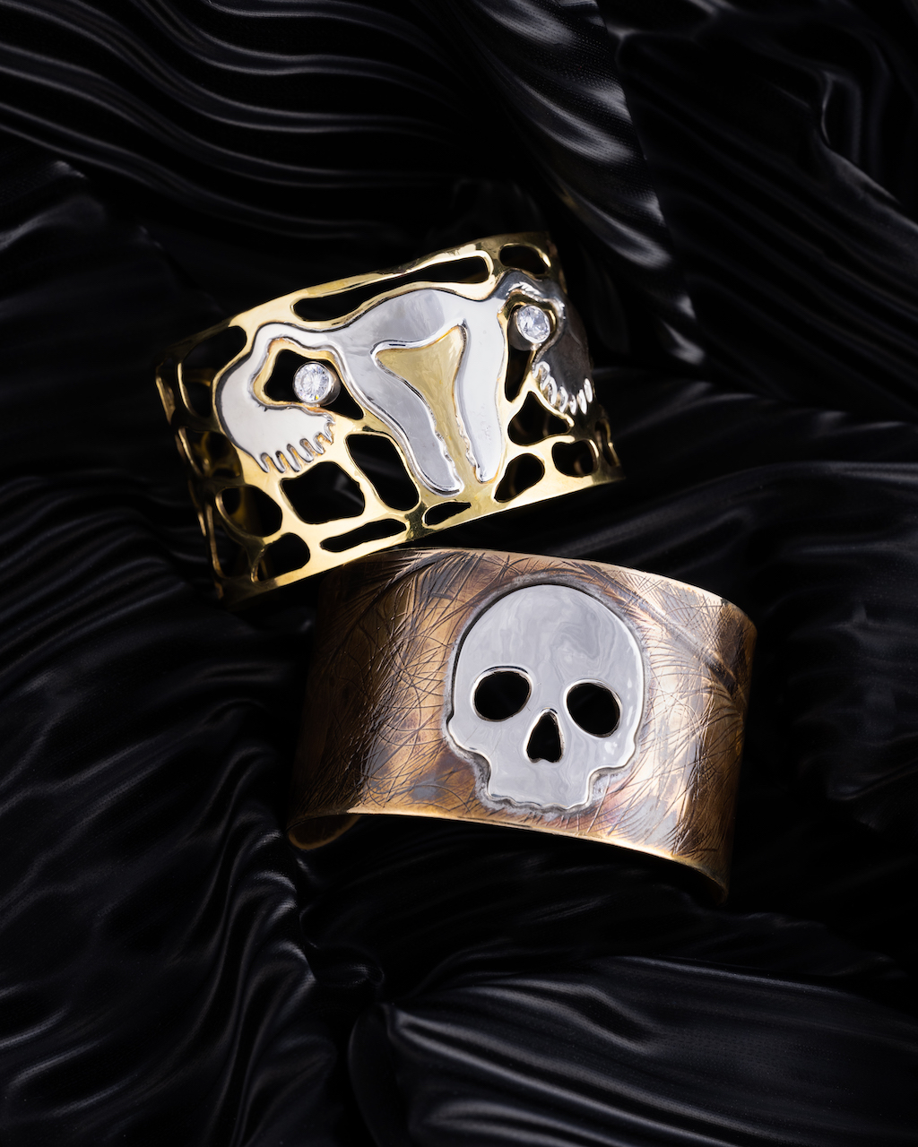 Caitlin Duckwall lives in Baltimore where she was trained as a Medical Illustrator at the Johns Hopkins School of Medicine, graduating from the Art as Applied to Medicine program in 1993. After spending 20 years working on artwork for anatomical atlases, medical journals, textbooks, lectures and websites, she found herself longing for something more tactile and dimensional. The pandemic served as an opportunity to consider this creative path and she began taking classes in metalsmithing at the Baltimore jewelry Center. As a student of Medicine and Biology, themes of nature and science always resonate with and make their way into her work. Recently, Duckwall has returned to computer-generated design, where she has been able to model intricate sculptures in Rhino and Z-Brush which can be 3D printed in wax resin and then cast in metal. The medusa collection 3D skull pendants are all examples of this technique.