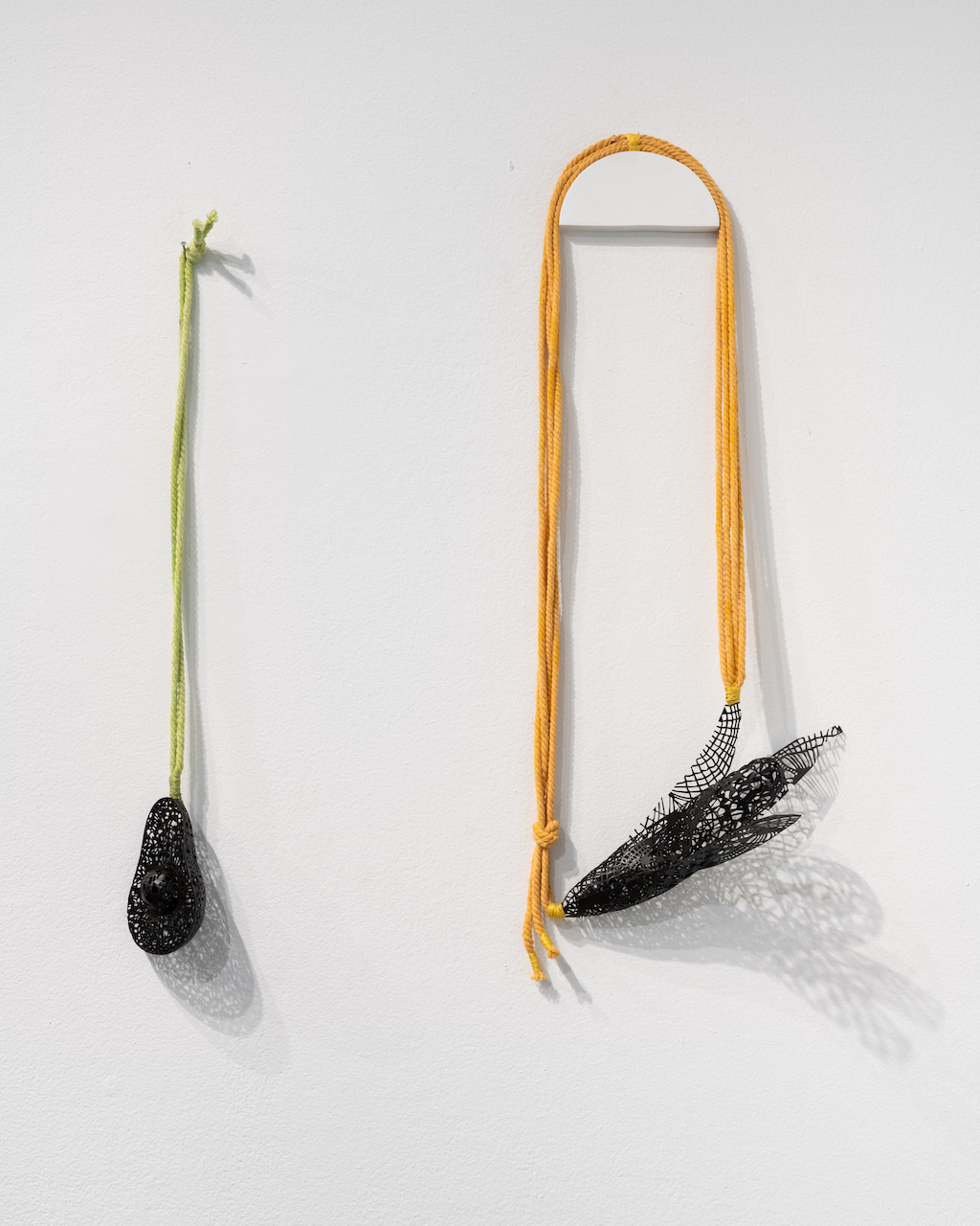 Marian Breitenbach is a jewelry artist influenced by the biologies of the natural world as well as the unreal realms of the imagination. Her pieces strive to be elegantly odd and wearably weird—a validation of those who feel unexpressed in their oddness. The artist’s Aril series, presented in the BJC Holiday Sale, is visually inspired by shell, pod, insect wing, and ribcage forms that are at once both closed and open, sometimes containing an object, sometimes filled with an eerie glow, and sometimes containing only air. Breitenbach aims for these works to convey a sense of both freedom and entrapment—a feeling of comfort in safety at odds with the yearning for escape. The pieces are formed from hand-finished laser-cut acrylic and photoluminescent epoxy resin utilizing both flat elements and thermoformed volumetric designs.