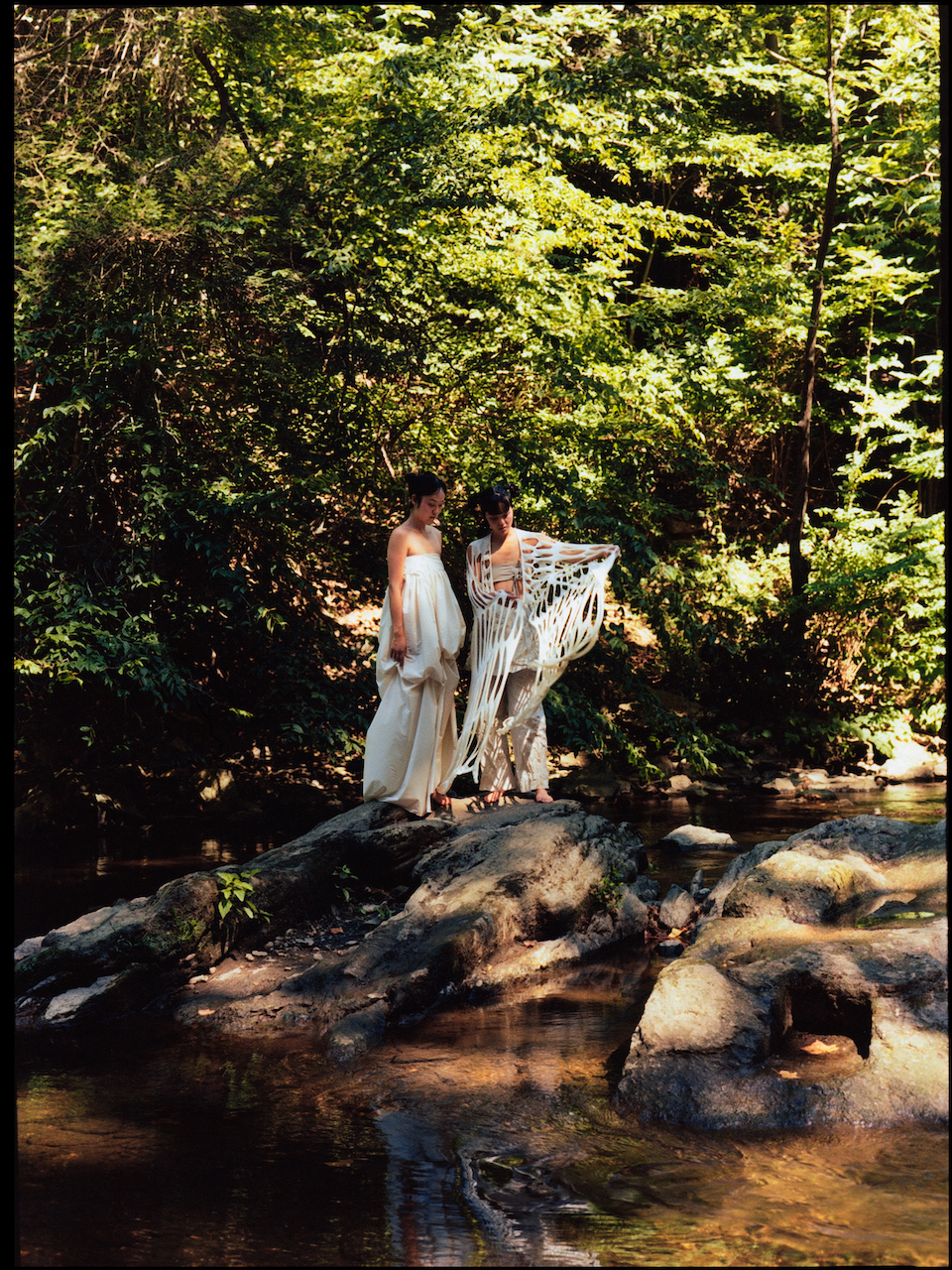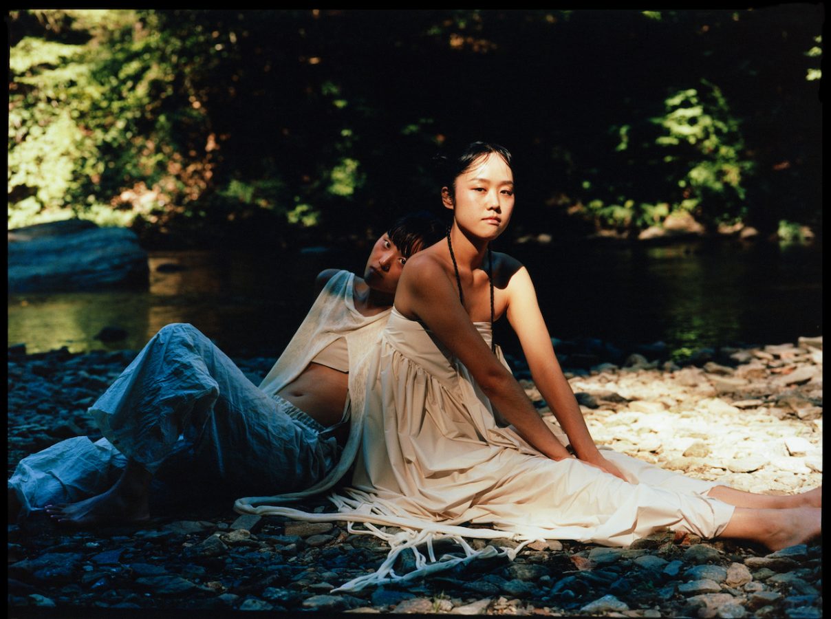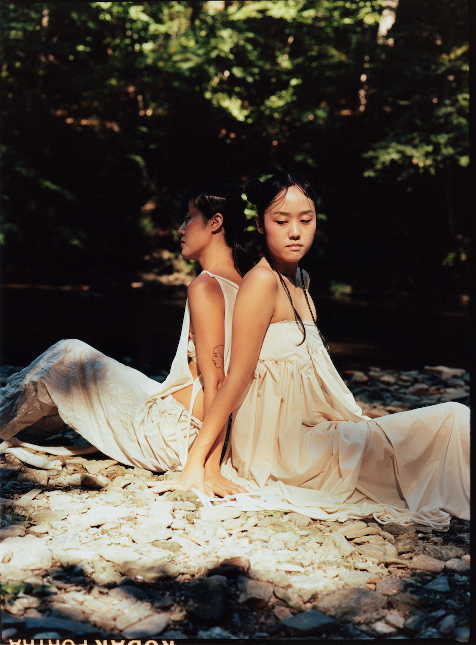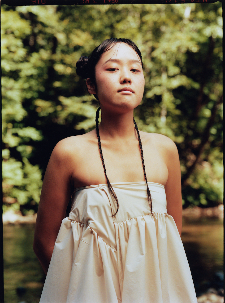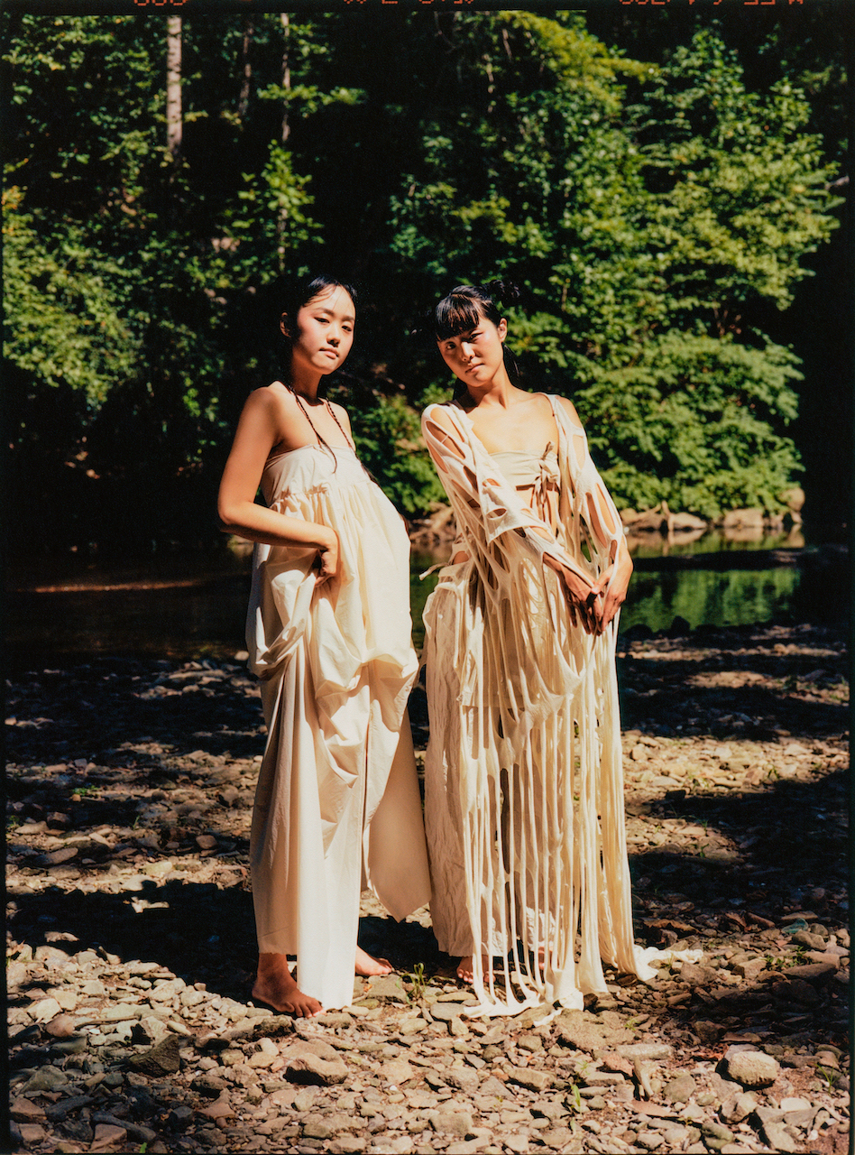 Seonnyeo travel in groups, where communal bathing is a bonding activity. Jeon’s seonnyeo, leaning against each other in the photos, captures the moment of such kinship and sisterhood, the way Jeon reclaims and connects with her heritage. The imagery also reflects her philosophy, or rather, joy: to see her art “activated by others” and “live beyond” her. As her main artistic practice, clothing design allows her to connect with herself, her environment, and community. “The intimate relationship, the immediate protection we have with clothes,” she adds, “I find poetry in that.”