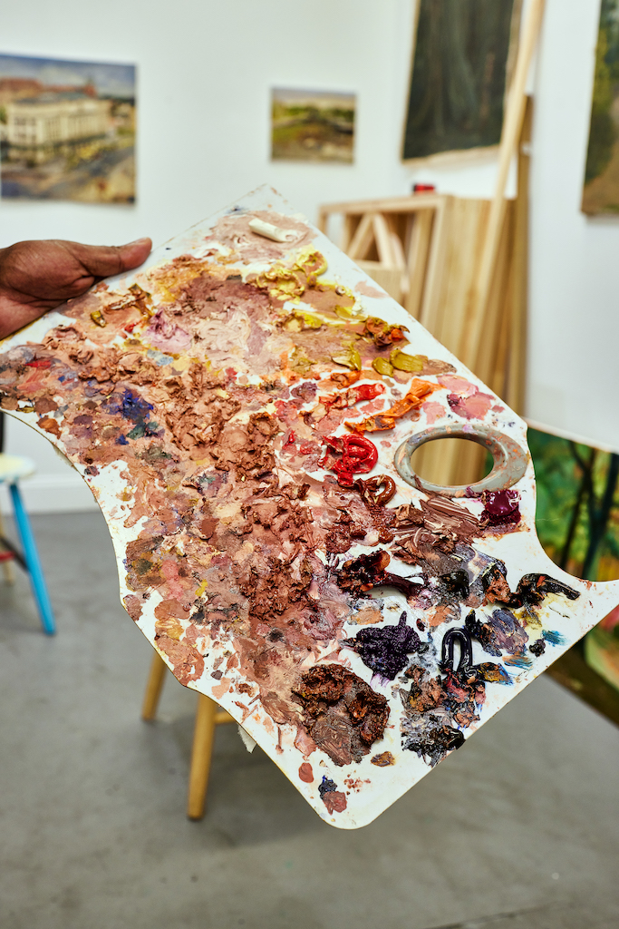 The cultural shock of the global move was especially extreme for Shebeshe, who had not traveled outside of Africa before arriving in Maryland. Questions of assimilation and relocation remain the subjects Shebeshe addresses in both his planned exhibitions as well as his large scale landscape paintings.
