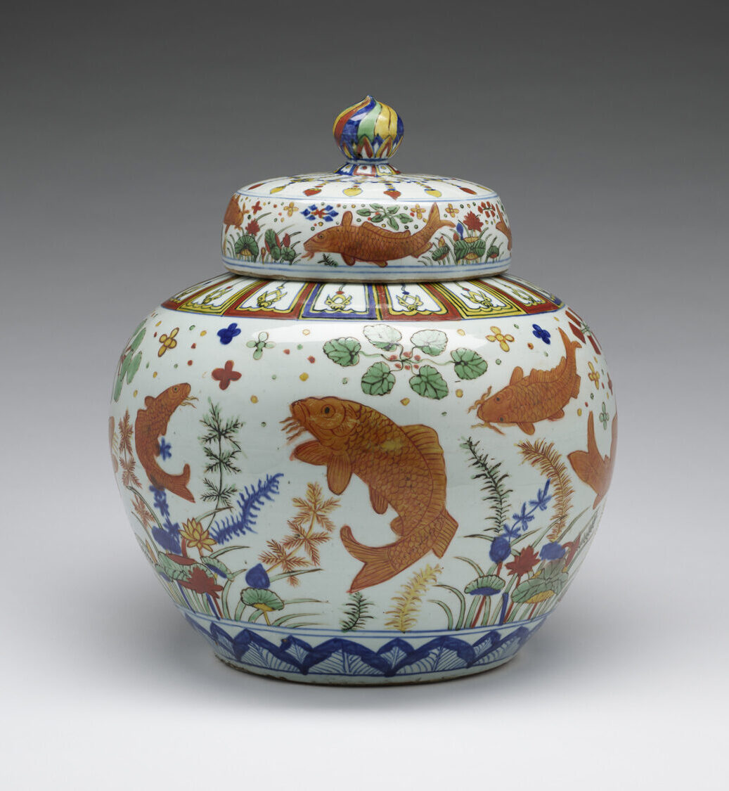 Wine Jar with Carp among Water Weeds and Lotuses, China, ca. 1522–1566, porcelain with underglaze blue decoration and