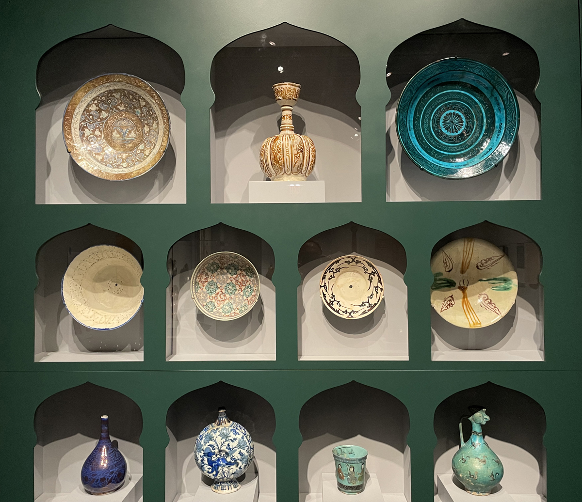 The next step is up to you. The cosmopolitanism of the Ottoman Empire? The erudition of Ming Dynasty China? The intentionally fluid floor plan offers a choice—but emphatic color choices (paradisical green for Islamic art, blue for East Asian) allow you to maintain your thematic bearings. So let’s head left, into a rewarding thicket of Chinese and Korean ceramics and bronzes.