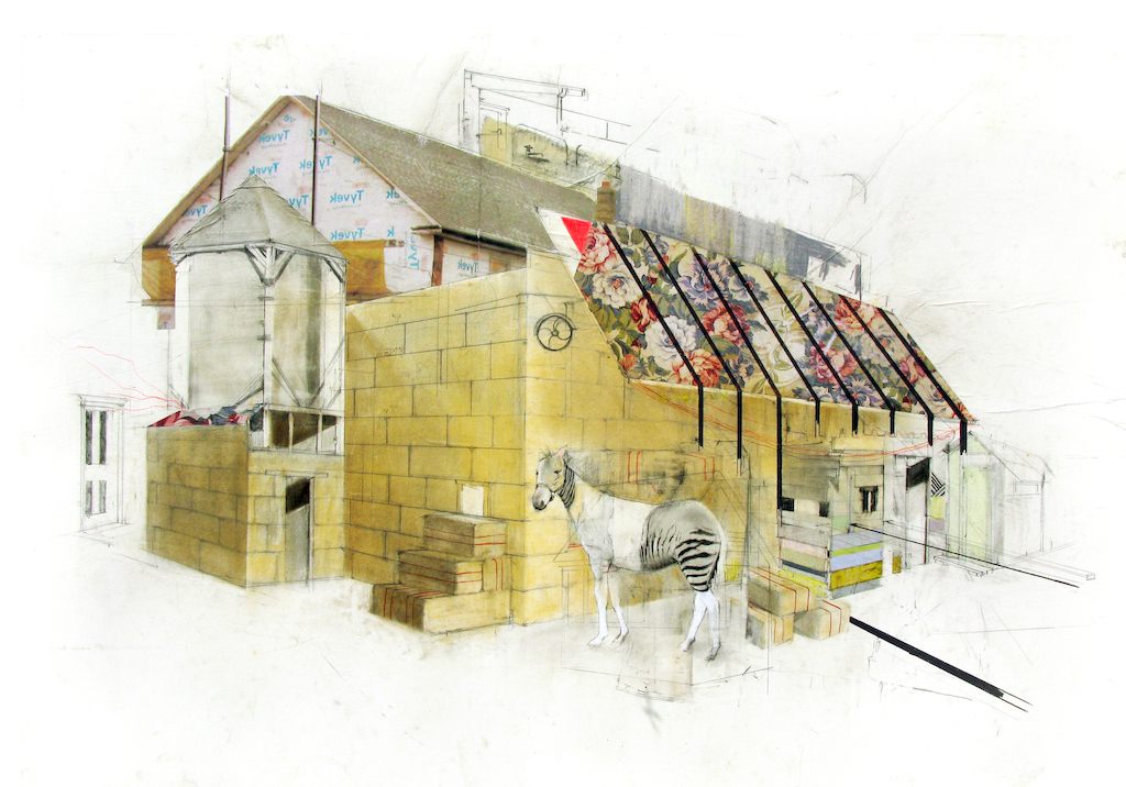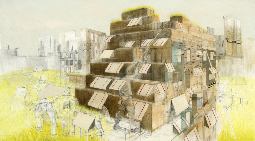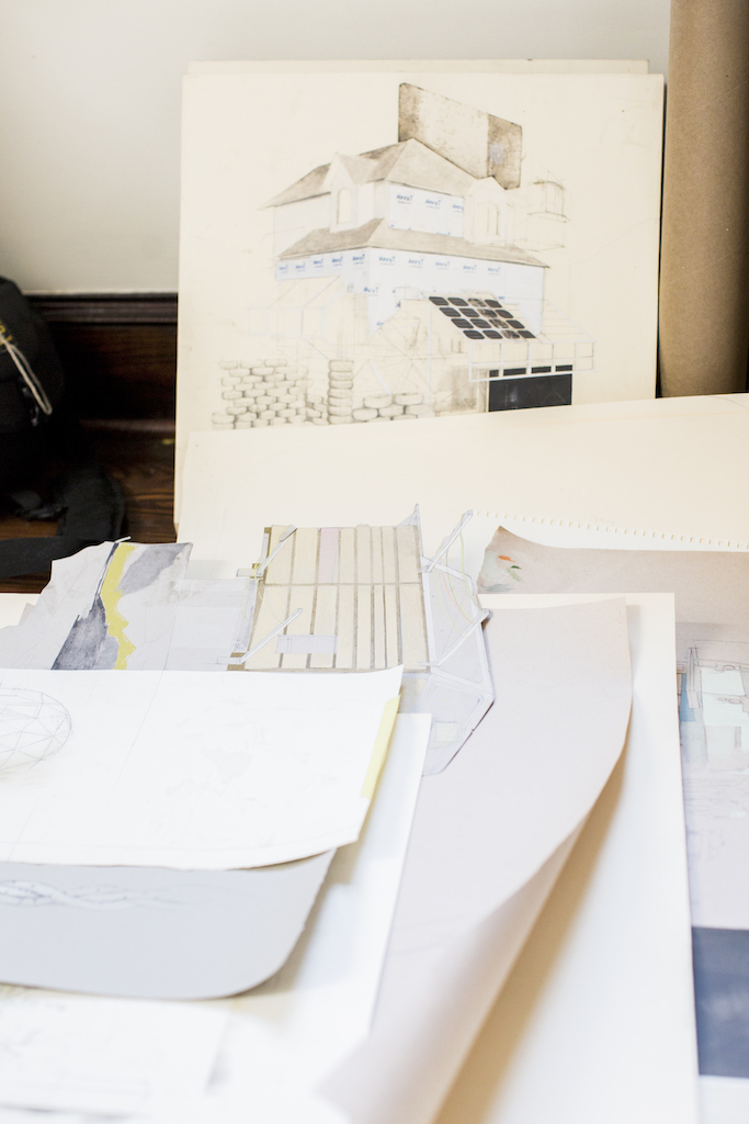 “Art and herbalism are my chosen vehicles to understand and express systems of oppression upon the planet, those that negatively affect our health and the environment,” says Dennis. “I call this the ‘overculture,’ where we only see reflections of ourselves in the world. Architectural interests and imagery have been a big part of how I visualize and express the overculture.”