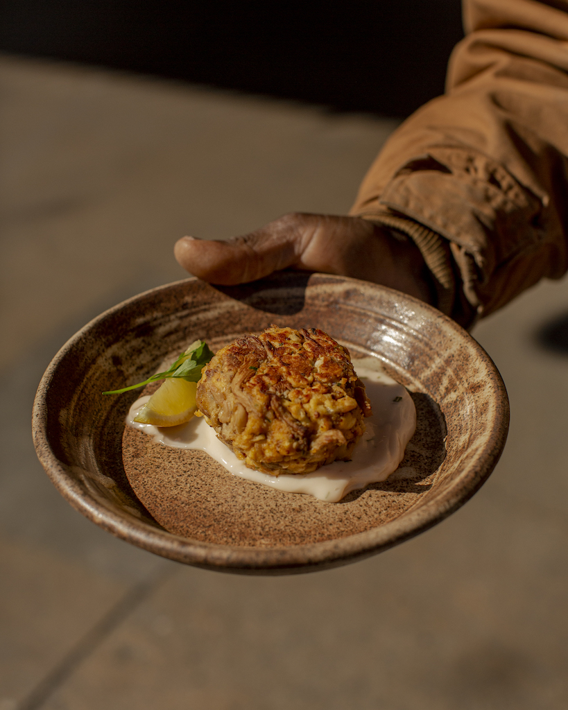 The flesh of an orange and white fruiting mushroom, plucked carefully from the bark of a 200-year-old tree, mixed with locally grown and milled grains, tossed in fragrant seasoning, pan-fried, and served on a hand-crafted ceramic plate made by a Baltimore artisan—the presentation and the food become a vessel for storytelling. A transient tale of life, death, abundance, and loss. The story of our region, our city, and the nation that it lies within.