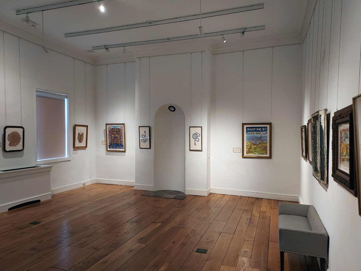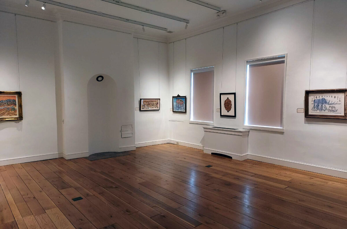 The work envelopes the viewer in the front two galleries on the Peale’s second floor, and the aesthetics of the art combined with the architecture momentarily confuse the viewer in time and space. One could believe they were looking at this exhibition in a European museum save for the police cruiser and I-83 visible through the window.