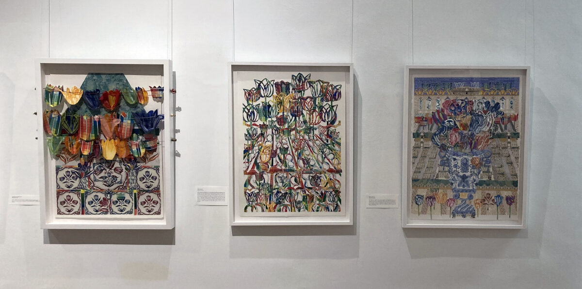 I was listening to peepers in the night, and I had this vision of a cracked turtle shell, and not enough pieces left to repair it. You’d have to blend the missing pieces in with something else, so I thought of the delft tiles filling in the cracks. And I think this is because I was involved with the tulipmania research project with Dr. Levin. Then I started doing research and it became very science based. Then you start writing grants and you realize you have to flush out your idea a lot more. It’s easy for artists to say, “Oh I hate grant writing,” but it really does help you focus on your idea, to add components you hadn’t thought of before, and audience. So that process helped inform where I was going.