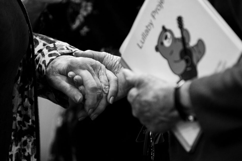 Lullabies are a conduit for the dreams of younger generations. At the same time, they can connect us to the generations that came before. On May 21st, as part of a multi-day music festival, seven residents of Weinberg Villages Senior Living Community in Owings Mills, will present personally composed lullabies produced in collaboration with Marcy Marxer and Cathy Fink—Grammy-winning songwriters from the Baltimore Classical Guitar Society (BCGS)—and professional musicians, Catherine Mikelson (cellist), Diana Sanchez (violinist), and Alina Antonenko (pianist). Mikelson, Sanchez, and Antonenko are members of the Iris Music Project (IMP), a non-profit that uses music to vitalize residential and healthcare communities and transform them into “spaces of creative exchange.”