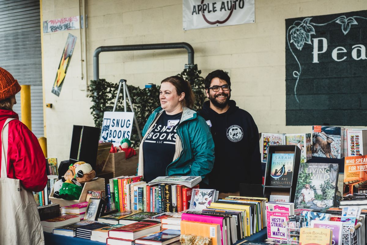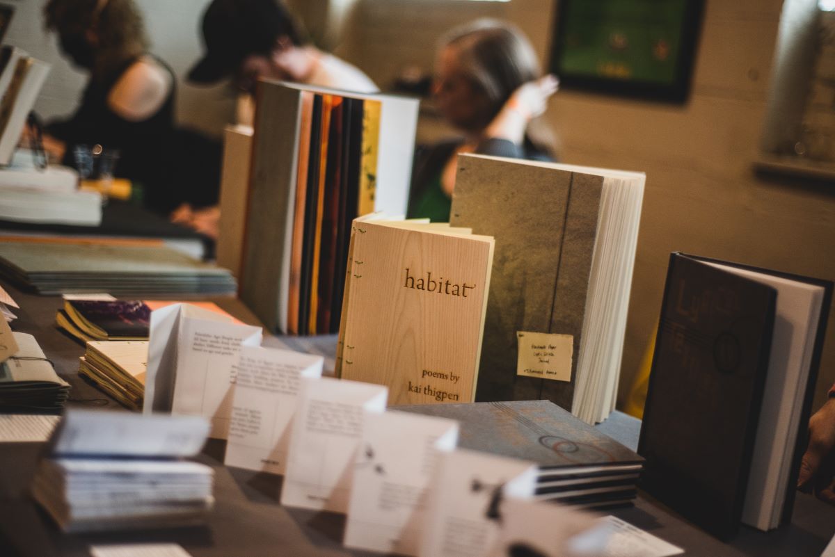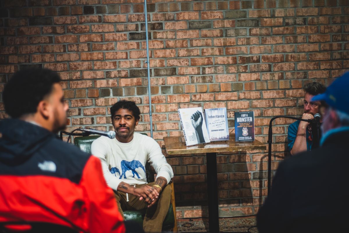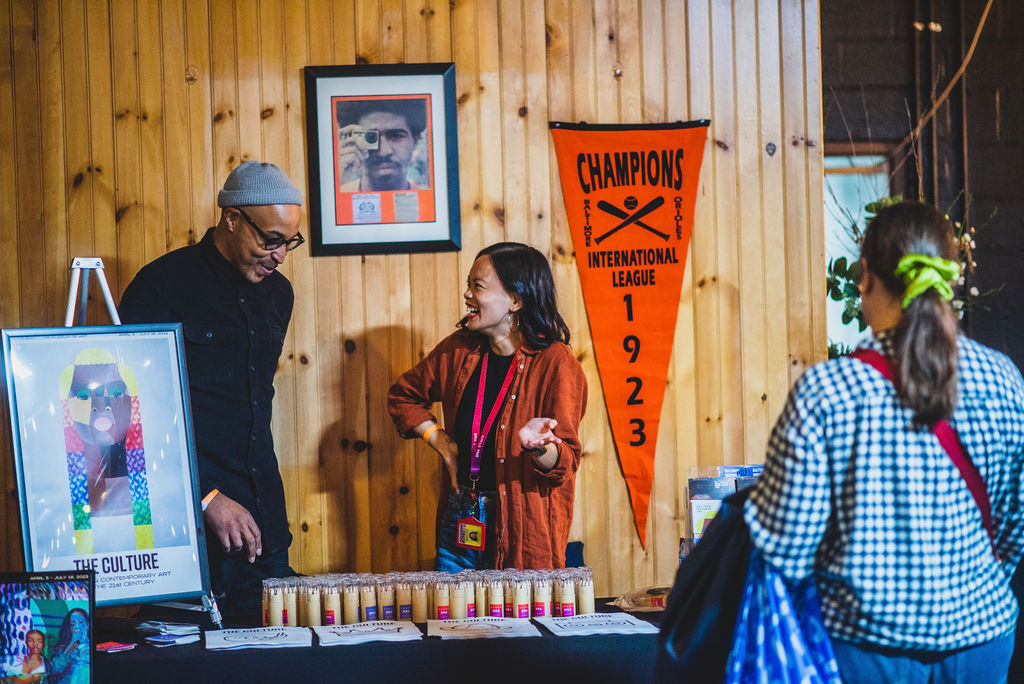 Waverly Book Festival’s opening night event, the eponymous writers salon featuring intermedia artist and writer Rahne Alexander, gave me distinct Baltimore house show vibes. It was set in an unfinished room inside Peabody Heights, a working brewery, taproom, and occasional performance venue housed in a former industrial space.
