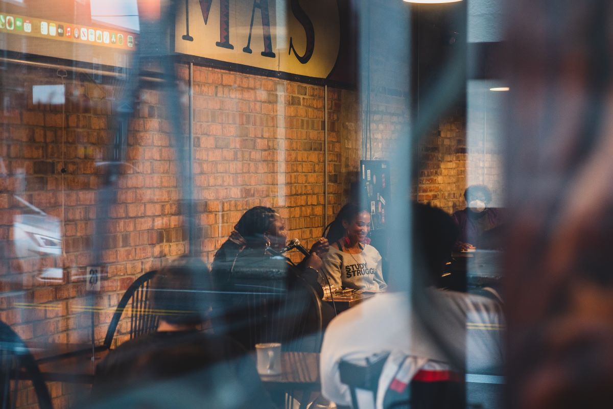 A few simple details helped create the warm atmosphere: the soft glow of Edison bulbs in the chandelier, a colorful rug spread out on the concrete floor, a single but sizeable Ficus gracing the random corner, and a slim gray cat with a white-tipped tail that zoomed in and out between the chairs a couple of times that night. Familiar sounds of the city buzzing with its usual Friday night energy drifted in through the open beer garden doors, providing a backdrop for the Baltimore-centric evening.