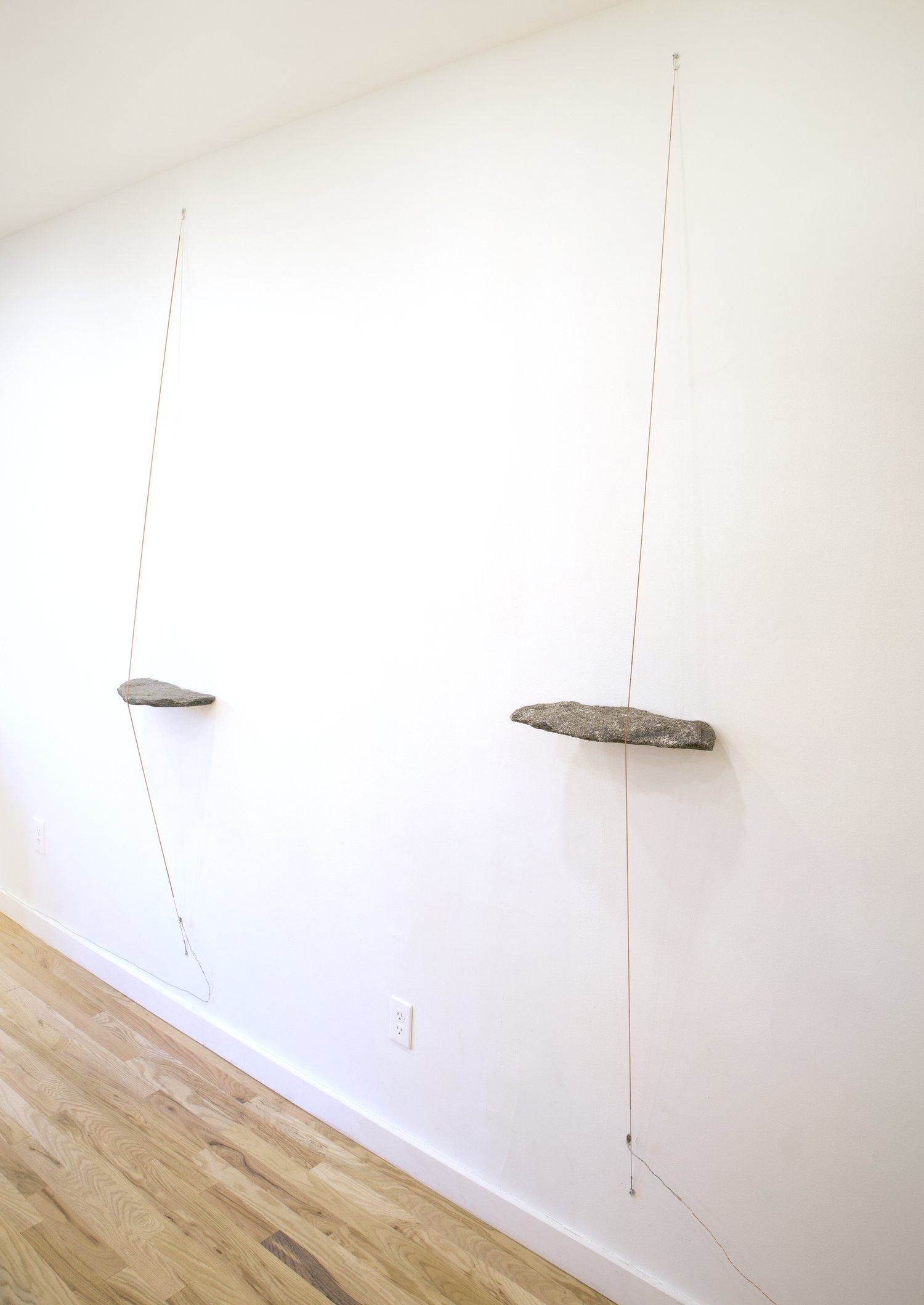 Franconia Notch is a glaciated valley in New Hampshire, and Drozd is interested in the ways glaciers move and sound as they drift and eventually disappear. In fact, there is no ice present in this work—just granite sourced from a quarry in the glaciated valley. The presence of the glacier is spectral, like a star that has blinked out of the sky. Drozd orchestrated her sculptural installations to address the dual ideas of circuits and extinction: The notes from the piano strings vibrate against the granite, play then pause then play on loop. Though the sounds may seem cyclical, the vibrations are subject to changes in temperature, or humidity, or airflow from people filling a room. The sound, ultimately, is not static but mutable. Fleeting.