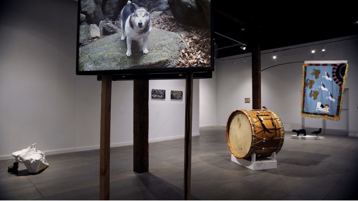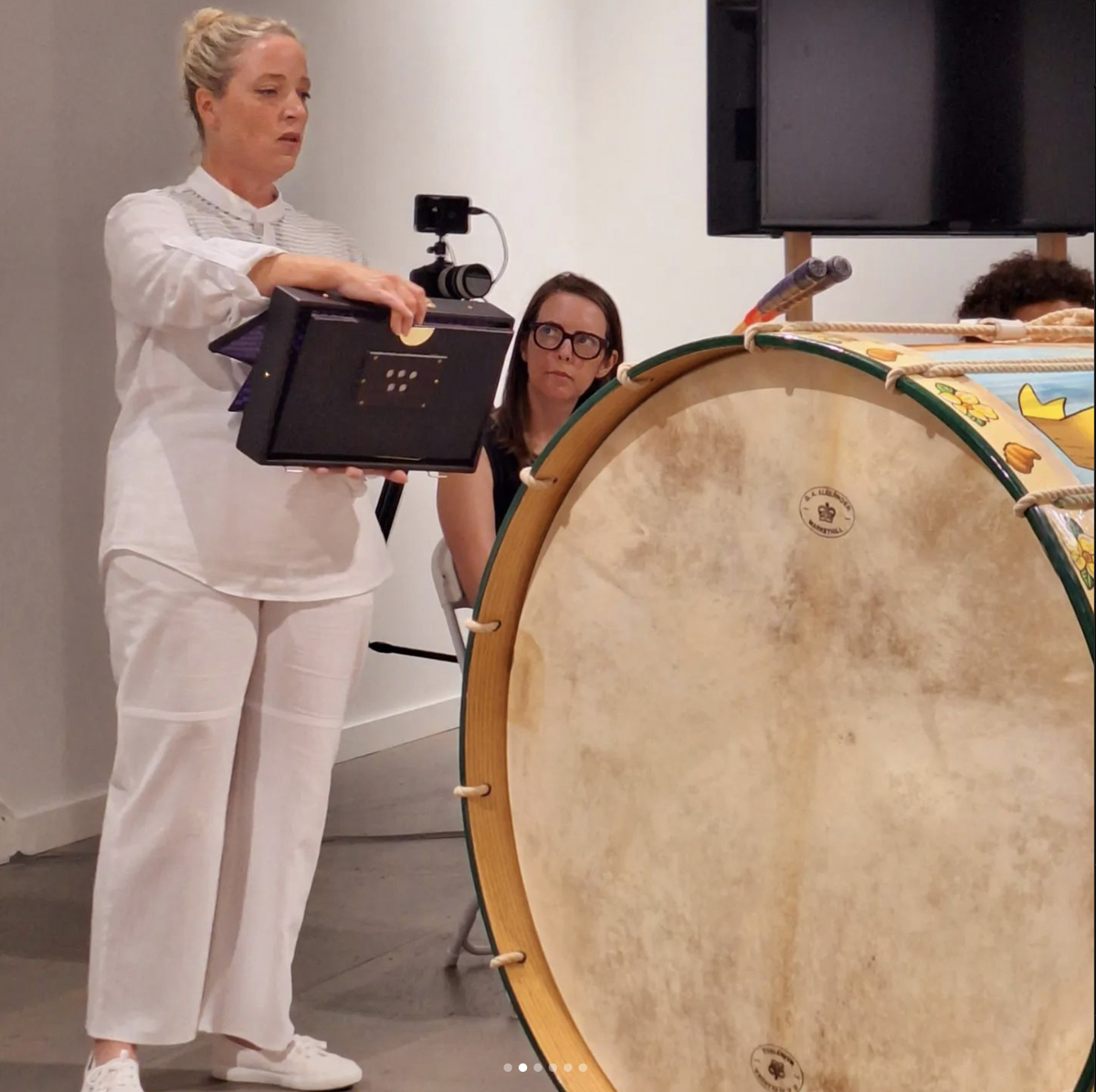 At the opening talk and performance for someone decides, hawk or dove at Stable Arts DC I found myself sitting beside a bronze cast of a pygmy hippopotamus and a seagull. Both creatures were solid black with beautiful textured surfaces. The gull had a shiny gold nugget in its mouth. In what was for the most part a fairly serious talk about the history of my home country’s divisions, I found myself laughing as Niamh McCann described the particularities of a Dubliner seagull’s character. They are virulent survivors that would snatch a steak out of your hand, she said.
