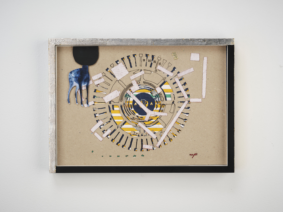 It’s in humor that we often find resilience, and McCann’s show is nothing if not resilient. The exhibit responds to the existence of a border on the island of Ireland between the North and South and the ongoing consequences and reverberations of this partition. It draws lines, maps territories, and above all focuses on intimate moments of humor and mythology. There is a tenderness in the midst of the fray. Combining sculpture, collage and video, the artist mines deep seams of the colonialist legacies of ‘The Troubles,’ a euphemistic term to describe the decades long sectarian violence dating back to the 1960s.