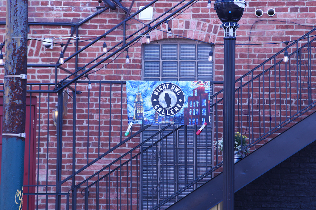 Fast forward to August 25 of this year, just a few weeks ago, Night Owl Gallery reopened its (magnetic blue) doors to the heart of Station North, perched right above The Royal Blue at 1735 Maryland Avenue. A few feet from the ajar front door, as Beth-Ann and I sit and discuss the move and her ambitions for the gallery, our eyes are both drawn to the happening street corner below us, where Maryland Ave and W Lafayette Ave converge—just a few blocks away from Penn Station.