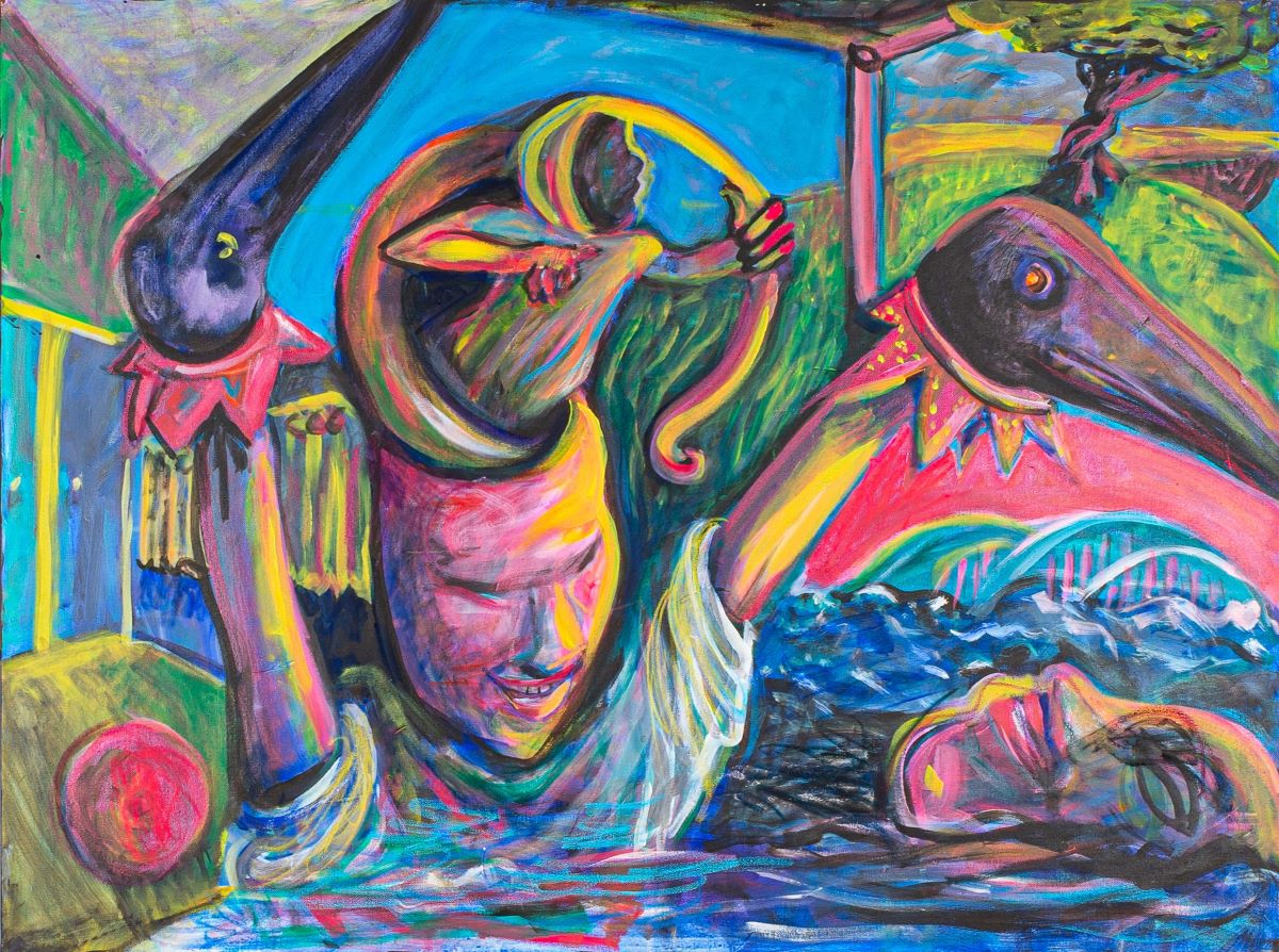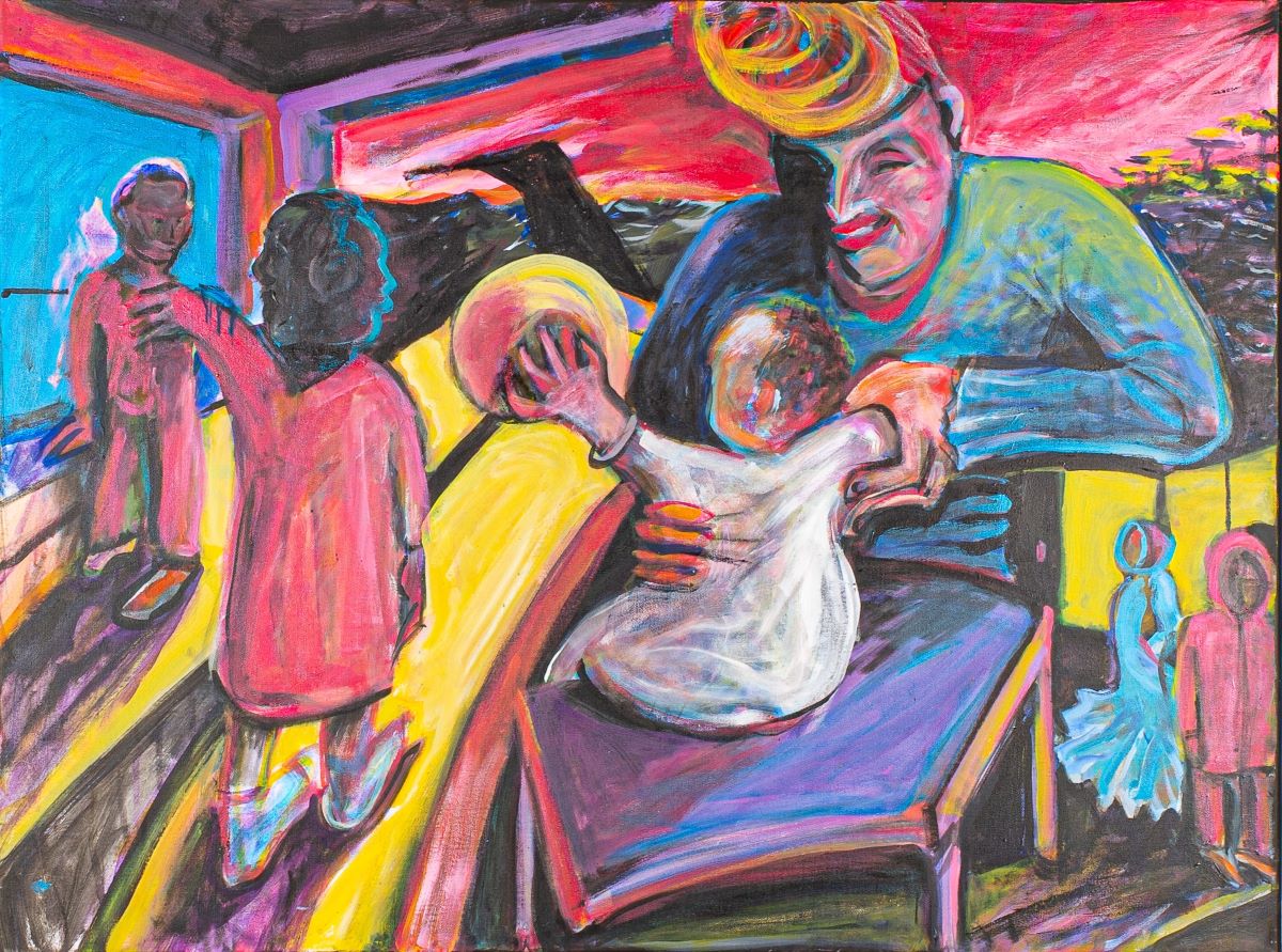 I met Sue nearly twenty years ago at one of John Waters’ Christmas parties when I was still married to my first husband. He and I used our savings to buy art in those days, and our friendship began in earnest when we purchased a crayon piece she had made of writer Gary Indiana from her show The Nuthouse Drawings at Creative Alliance. The picture hangs in my office, still arresting me every time I look at it: the movement and color capture the author’s snarling demeanor, bloodshot eyes cut from photographs pasted in place. According to Sue, she had originally given the picture to John for Christmas, but he allowed us to purchase it, taking a different one for himself. We paid $300. Even in the early 2000’s, this was a steal.
