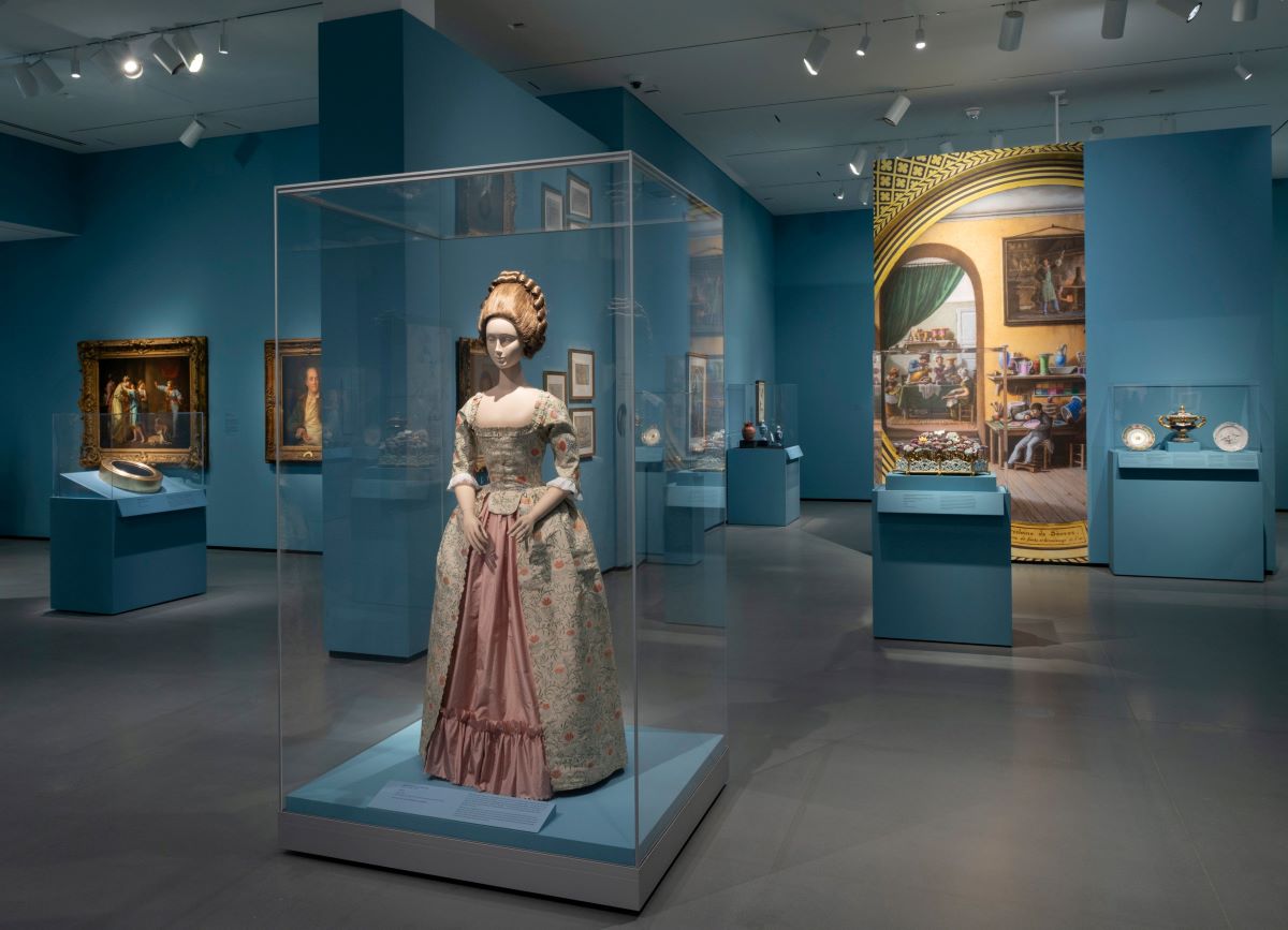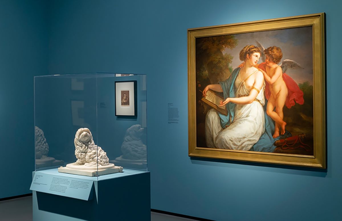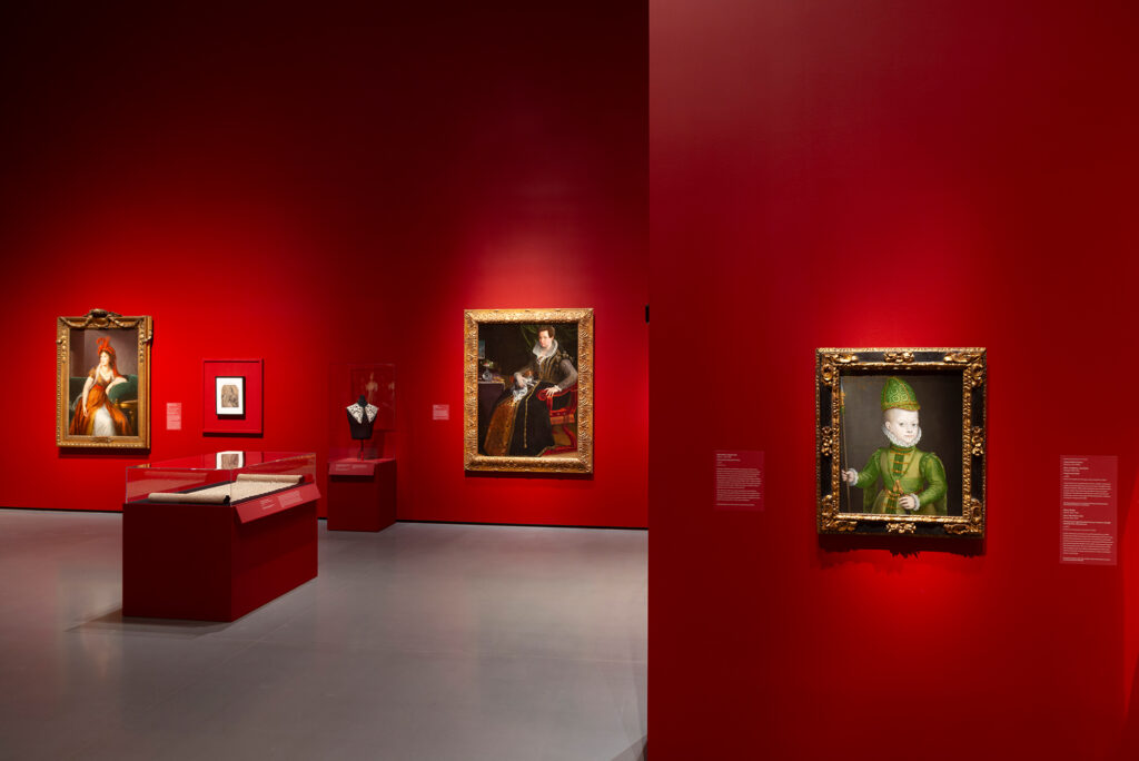These stunning depictions of violence are nested in the first gallery of the exhibition, which welcomes the viewer with carmine red walls and works by some of the most famous women artists of the era, including Elisabeth Louise Vigée-LeBrun and Lavinia Fontana. Overall, you’re left with an impression of a kind of curatorial iconoclasm or an art historical joke about “killing your darlings” that is both funny and a bit on the nose. But what makes this opening gallery particularly interesting is that these canonical works of women’s art history surround an elegant centerpiece of 17th century lacework from the BMA’s own Cone Collection. From its very entrance, the exhibition whispers, “Come for the blockbusters but stay for the decorative art and material culture.”