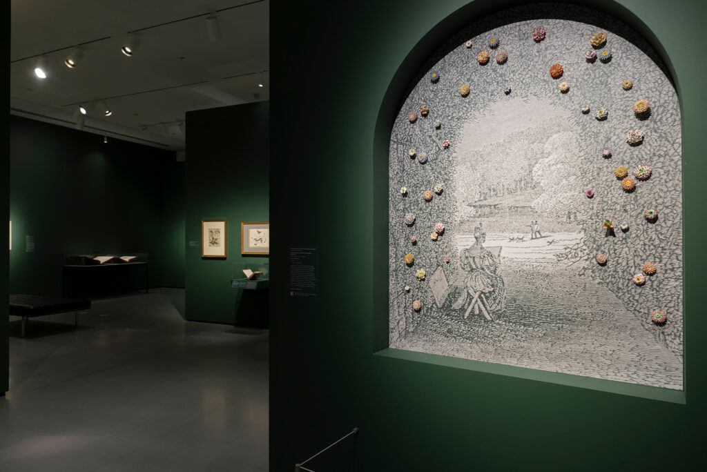 Co-curated by Andaleeb Badiee Banta, Senior Curator and Department Head, Prints, Drawings & Photographs at the BMA and Alexa Greist, Curator and R. Fraser Elliott Chair, Prints & Drawings at the Art Gallery of Ontario, Making Her Mark intentionally breaks down the categories of canonical art history, showing work by women from traditional high art disciplines like painting, drawing, and sculpture alongside often anonymous, or uncredited (and sometimes originally miscredited) works of decorative art, craft, and material culture like embroidery, paper-cutting, and lacemaking.