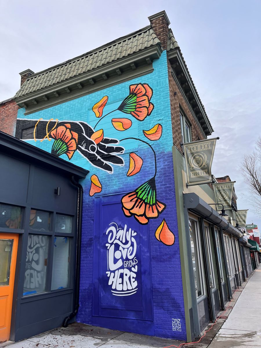 Standing in front of Jaz Erenberg’s vibrant murals feels like inhaling pure color. It’s exhilarating, akin to finding money on the ground or watching sun dance through rain-drenched leaves. Erenberg’s paintings are impressive in skill and scale. They’re entities that both animate their urban surroundings and seem to breathe themselves. Bold additions to Baltimore’s neighborhoods, these candy-colored artworks, and their creator, harbor a surprising history.
