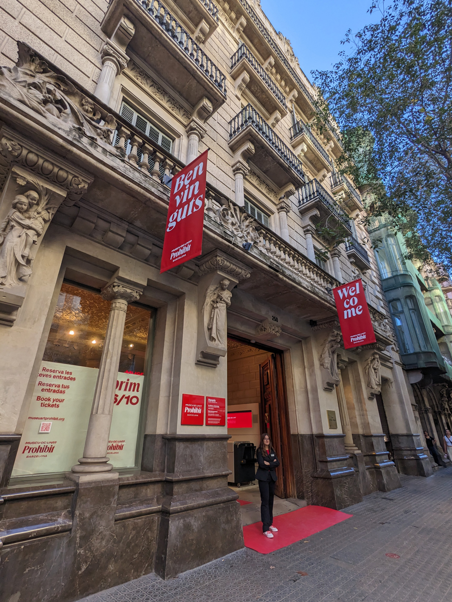 “I started searching online for artworks that had been censored worldwide,” Benet explained at the museum’s press preview, “but I didn’t think ‘oh one day I’ll have this building in Eixample and open a museum.’” The gorgeous setting itself was also important. Designed by Enric Sagnier as a private residence for a wealthy family in the beginning of the 20th century, it was abandoned during Spain’s brutal civil war, a conflict which resulted in the persecution, exile, or extermination of much of Barcelona’s intelligentsia after the city’s reluctant fall to the fascist army. Ironically, it later served as a Catholic school—a fact that made me chuckle while viewing many of the blasphemous artworks it now houses.