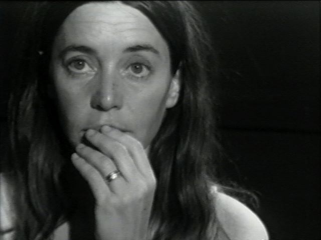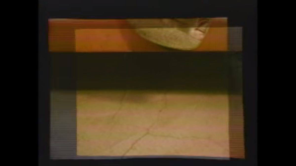 The most recent work is Gary Hill’s Around and About (1980). Hill’s idea, as quoted in An Art of Limina: Gary Hill’s Works and Writings, was to “cut images for every syllable of a spoken text.” In Around and About, fragmented, impersonal images of his studio flash in sync with the rhythms of an intimate, letter-like monologue to the viewer or perhaps a lover, as he reads it.