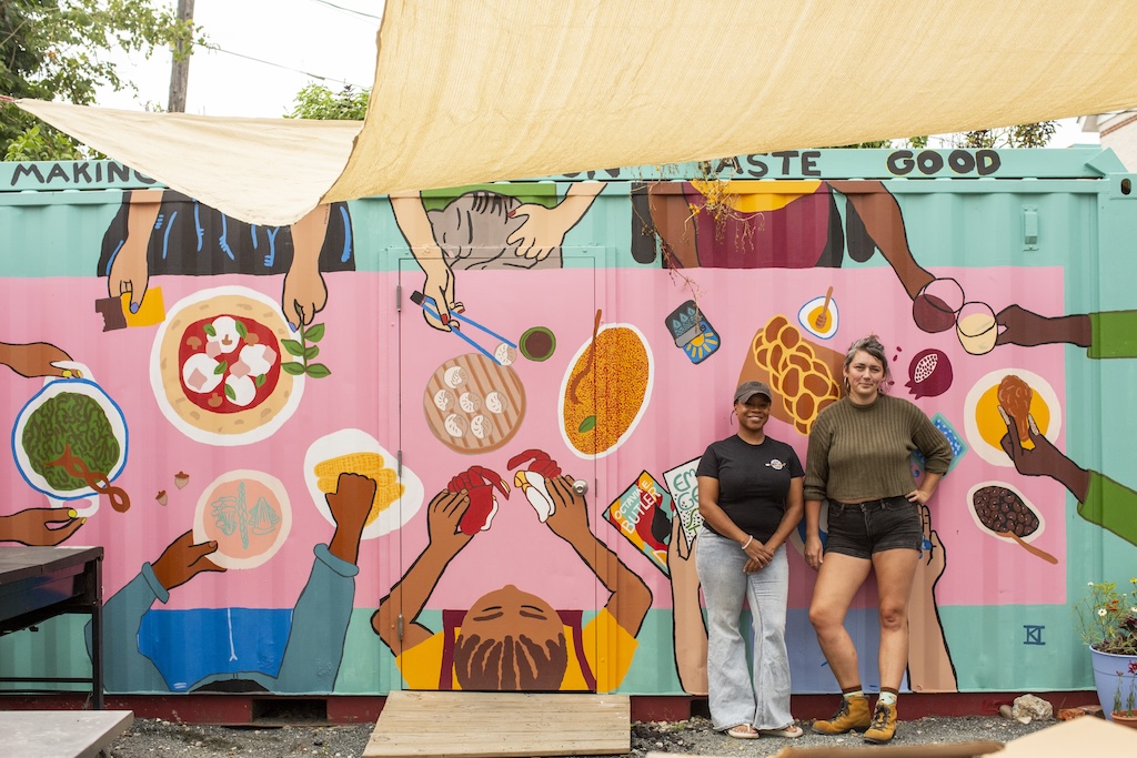 Drive south on Howard Street, and the colorful exterior of Our Time Kitchen, Baltimore’s newest ghost kitchen, stands out amongst its neighbors. The spirited botanical mural, created in collaboration with the community by AfroLatina artist Jaz Erenberg, features hands planting seeds and a long sigmoid braid curling along the wall. “It’s inspired by the resilience of Black people that were forcibly enslaved and brought to the US, braiding seeds in their hair and planting those seeds as a way to survive,” explains co-founder Chef Kiah Gibian. “Braids have an essence of femininity,” she says. “It was important for us to get the mural up fast, so it’s a talking point,” adds Chef Cat.