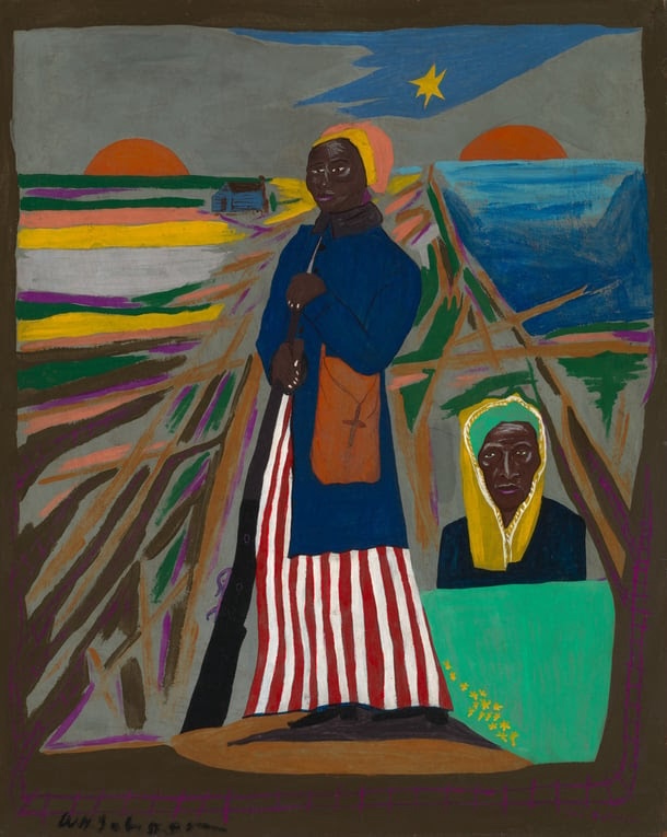A mulberry-colored ram has one face like a Picasso bull, another like a Matisse dairy cow. There are Black figures in chains, representing both the slaves in Egypt and the Africans brought to the ports in Annapolis. Jackals guard the premises, and a river — a landscaped brick path masquerading as the Nile — runs through the whole scene.