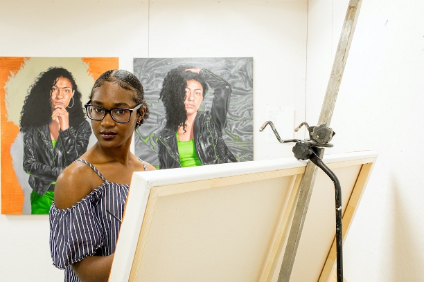 “Black youth are often judged negatively by their appearance; an afro, braids, barbershop cut, tattoo, hoodie, and other traditional dress styles place them in the immediate threat zone. When people outside of the Black community observe my paintings, I want them to try and imagine who the individual is while placing all preconceived notions and stereotypes aside. And when encountering Black youth, I hope they will consider, as when viewing the subject in my work, that the individual’s outward appearance is a positive form of self-expression.