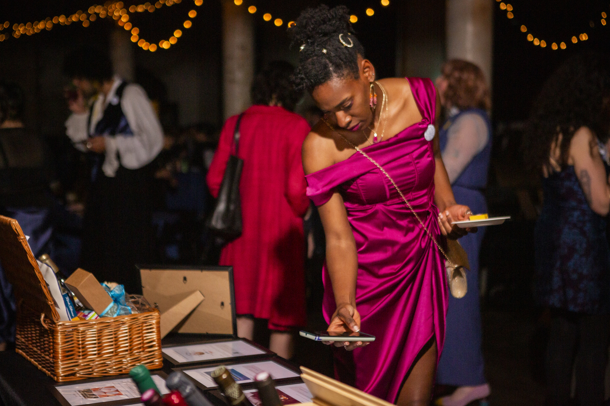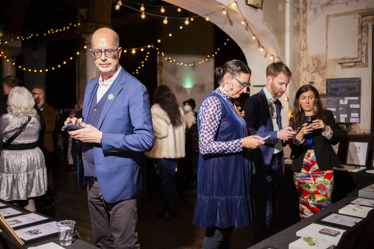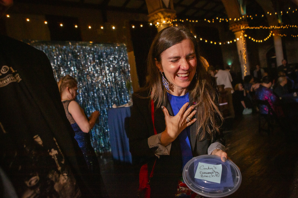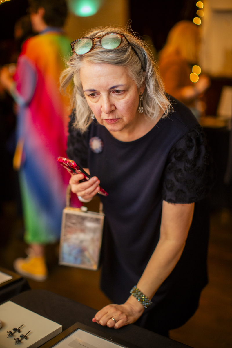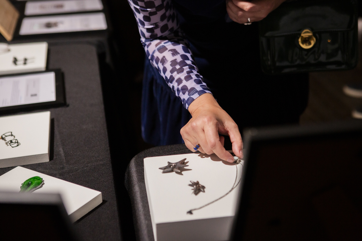 For those who missed the event, you can still support the Baltimore Jewelry Center’s ongoing “Fund a Need” campaign online, directly donating towards goals such as buying a shared tool for the studios or funding scholarships for BIPOC artists. I’m one of the only BmoreArt team members who couldn’t make it this year, but thankfully Jill Fannon could—capturing all the fun our coworkers had, and stoking the flames of my perpetual FOMO. Check out her photos below.