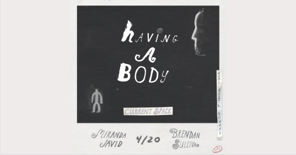 Current Space is proud to present ‘Having a Body,’ an exhibition of works by Miranda Javid and Brendan Sullivan.