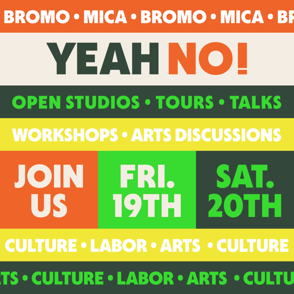 Created as a collaboration between BULK Space, Mdw, and Independent Curators International, this gathering is a dynamic fusion of regional perspectives and global insights. “Yeah No” is a two-day activation designed to investigate different regions around the US and how people engage with art, culture, and their relationships to labor. “Yeah, No” is honored to partner with Bromo Arts District, a Baltimore staple, to elevate the meaning of place and celebrate Baltimore-based brilliance. This NOT symposium invites you to delve into the stories shaping the cultural tapestries of various regions throughout the US—places where creativity, dedication, and behind-the-scenes work converge to form compelling narratives.