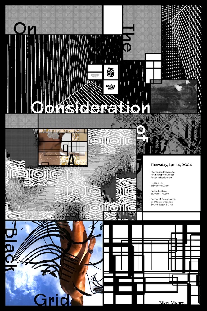 On Thursday, April 4, from 6:00pm–7:00pm at SU’s School of Design, Arts, and Communication Building, Munro will give a public lecture, On the Consideration of a Black Grid, a visual essay that charts a series of experimental meditations on how grids can shape Black liberatory forms. Through his Polymodal design investigations, Munro sets a curious space that asks the question, What might be a Black Grid?