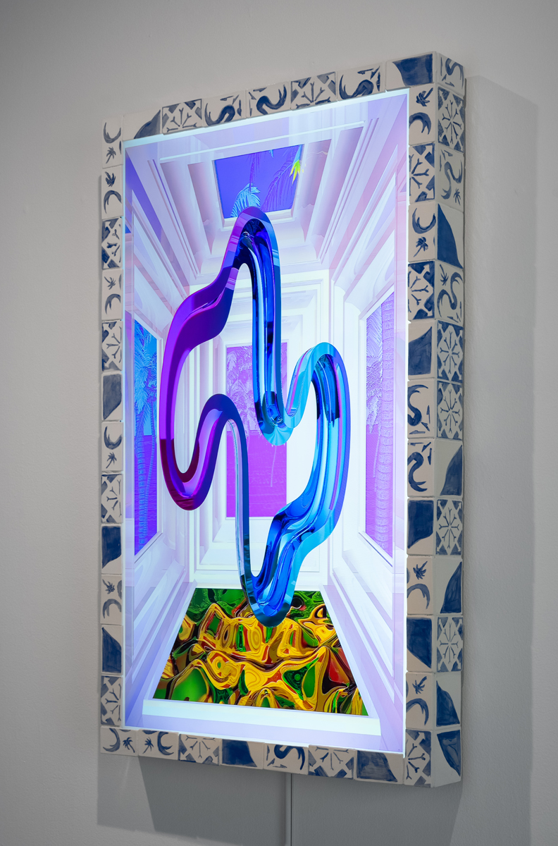 In Tales of the New World, a multimedia installation currently on view at the Museum of Contemporary Art Arlington, Brazilian artist Johab Silva takes both his subject and his tools dead seriously. What is Silva’s subject? Well, nothing less than the global cataclysm we find ourselves in—from the lingering effects of colonization, to sustained war and genocide, environmental degradation, and rampant consumerism—Silva is deeply concerned with the most pressing issues facing humanity, but as revealed through the lens of our most advanced technologies. Using the new media tools of Artificial Intelligence (AI), AR, and VR, Silva takes a high-tech approach to exploring the complicated history of the New World.