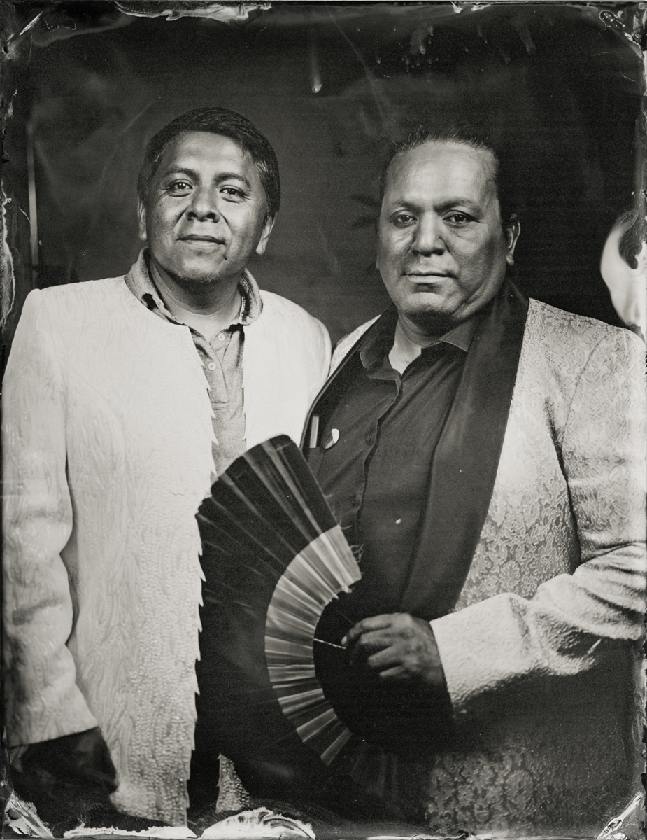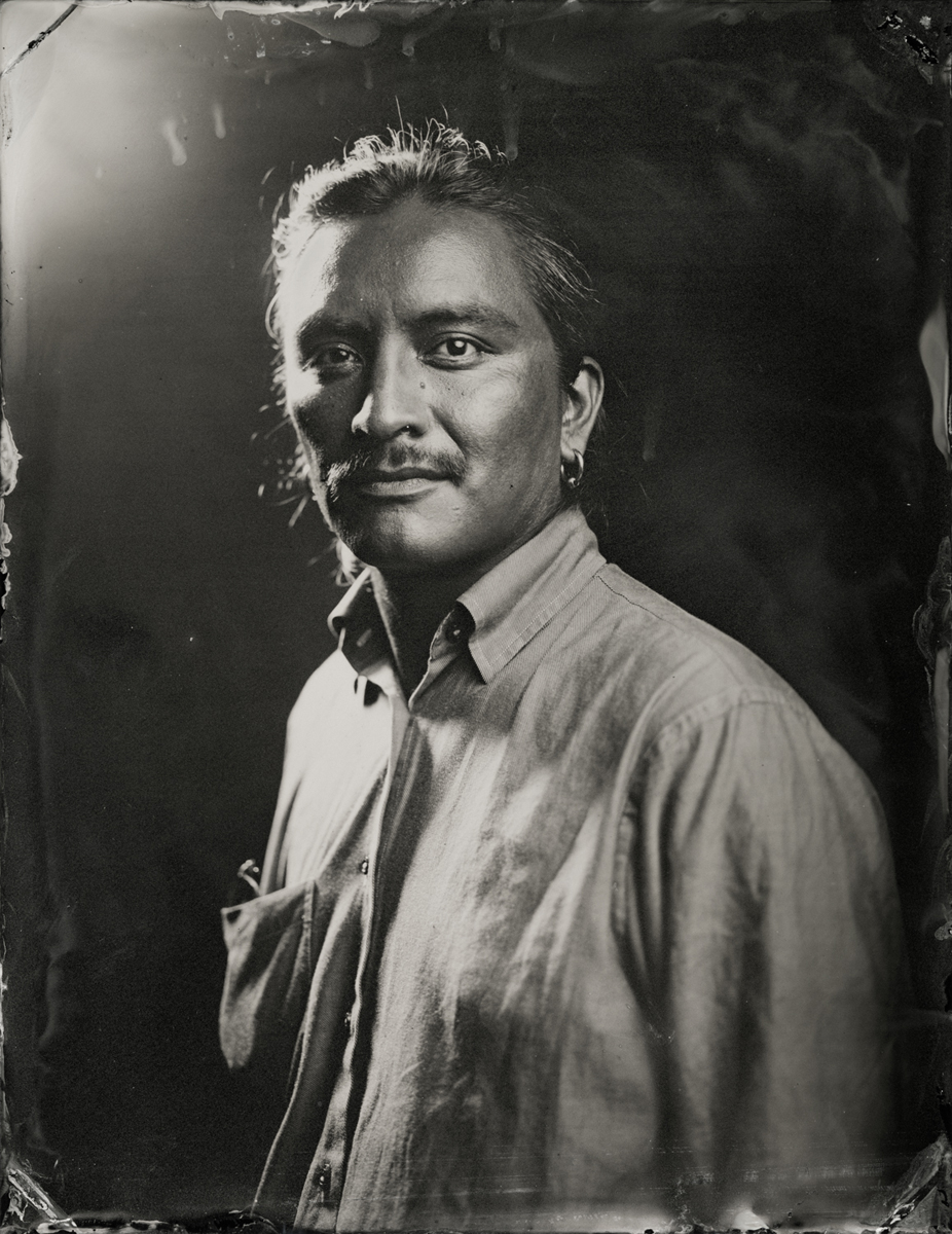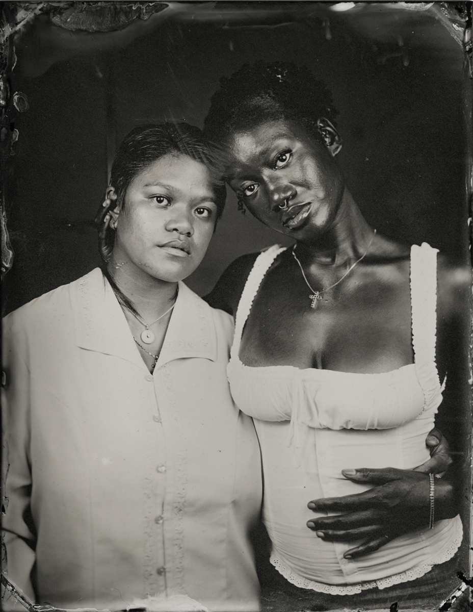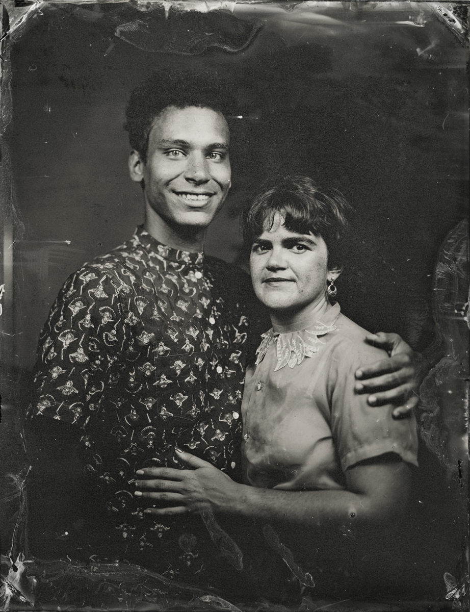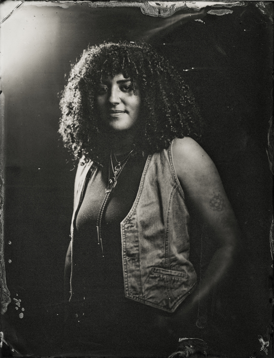 Elena Volkova: A tintype (or, wet plate collodion) is a photograph made by creating a direct positive on a thin sheet of metal coated with collodion and light-sensitive silver nitrate. During the sessions, each plate is hand-coated, exposed in camera, and developed instantly, with the process visible to the participants.