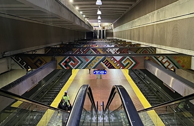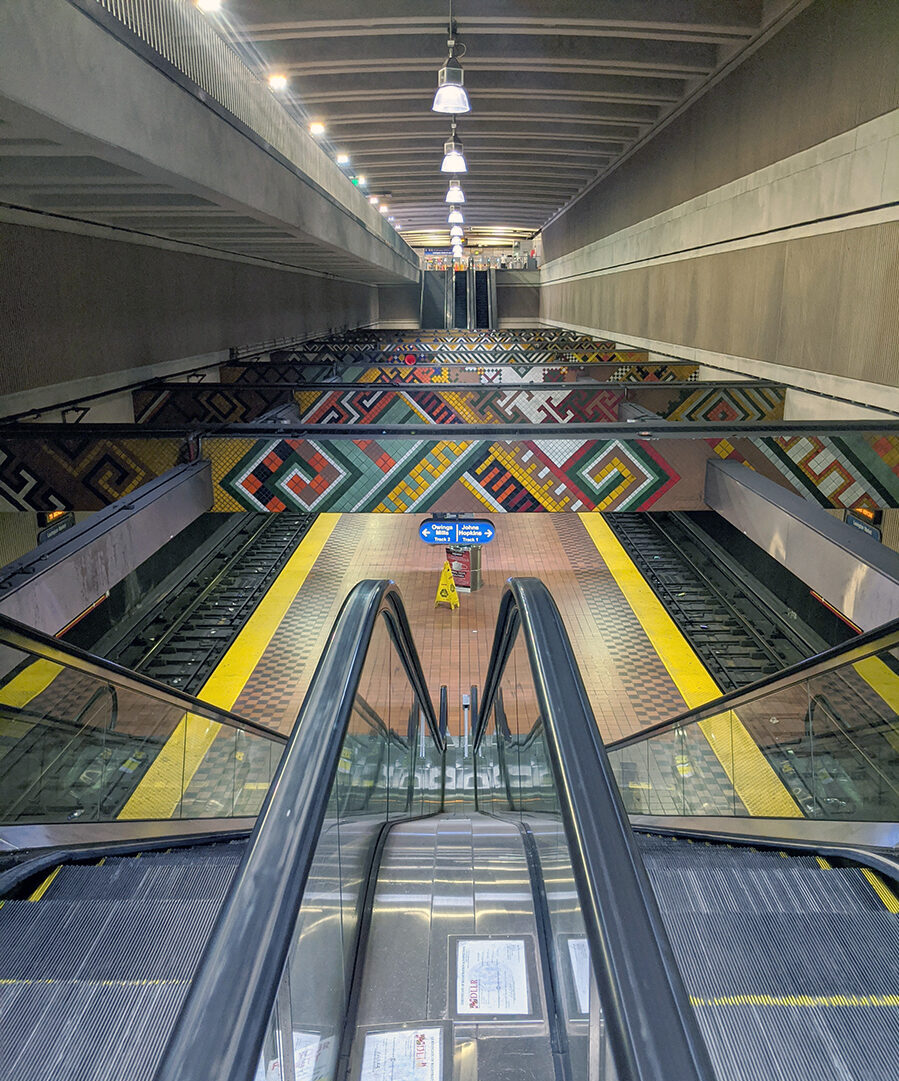 One to the MTA: How about more regular maintenance and better lighting of “Geometro” (and all Metro stop artworks)? The impossible-to-color-correct images that accompany this column are proof that this request is on point (I’ll be in touch with you MTA folks, by the way).