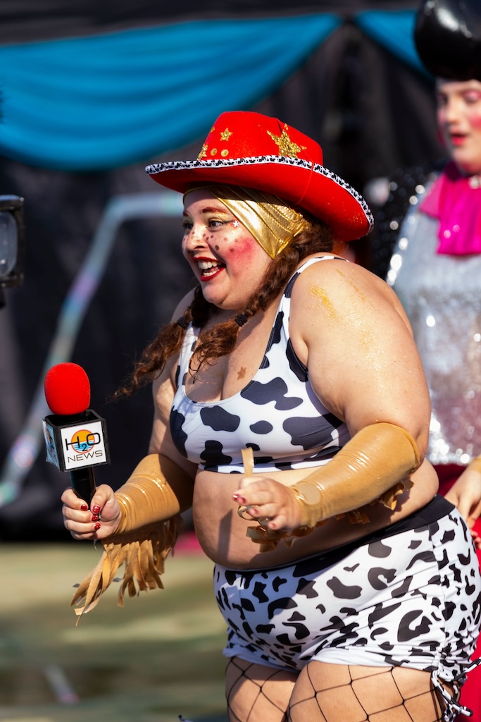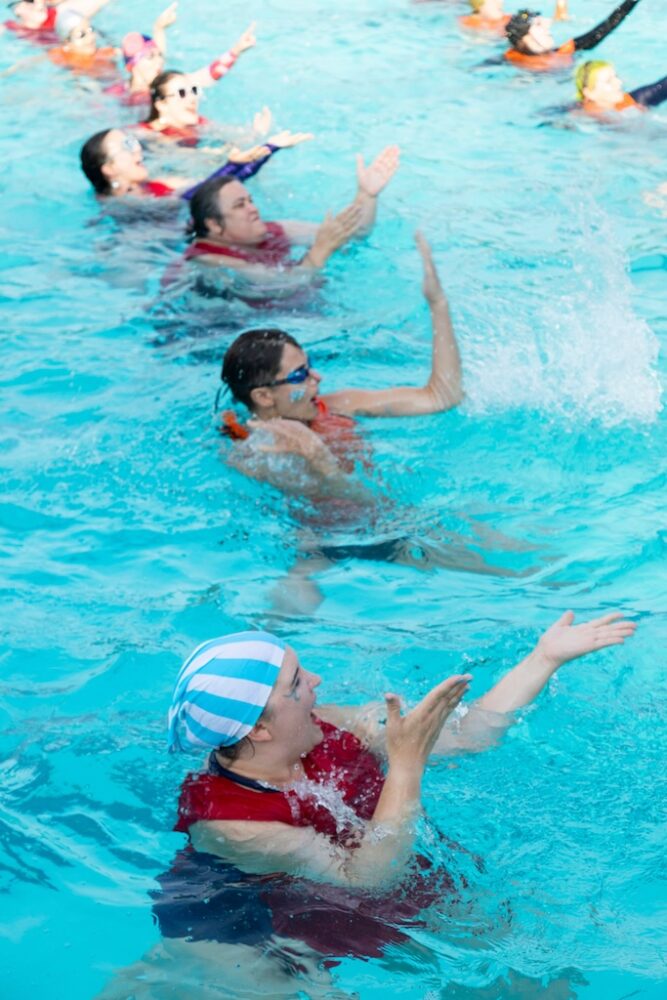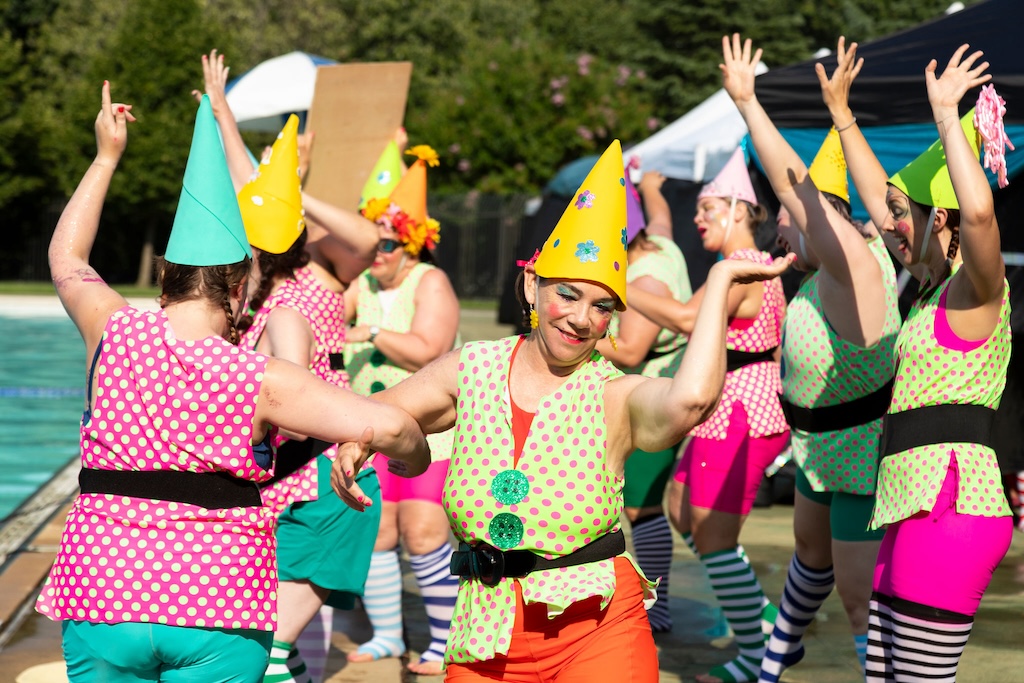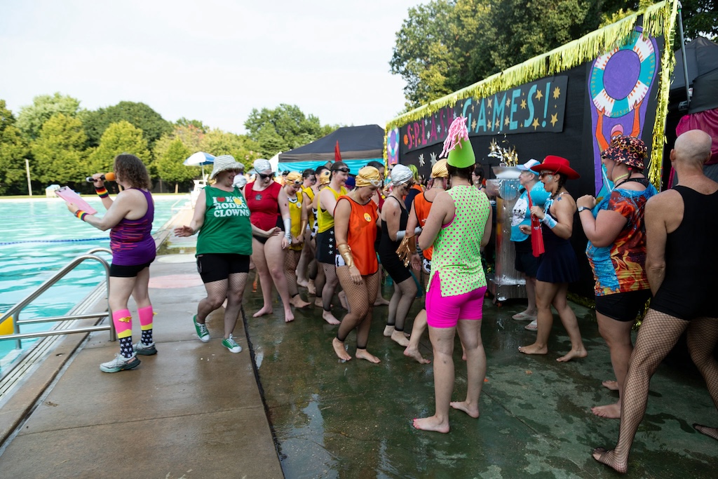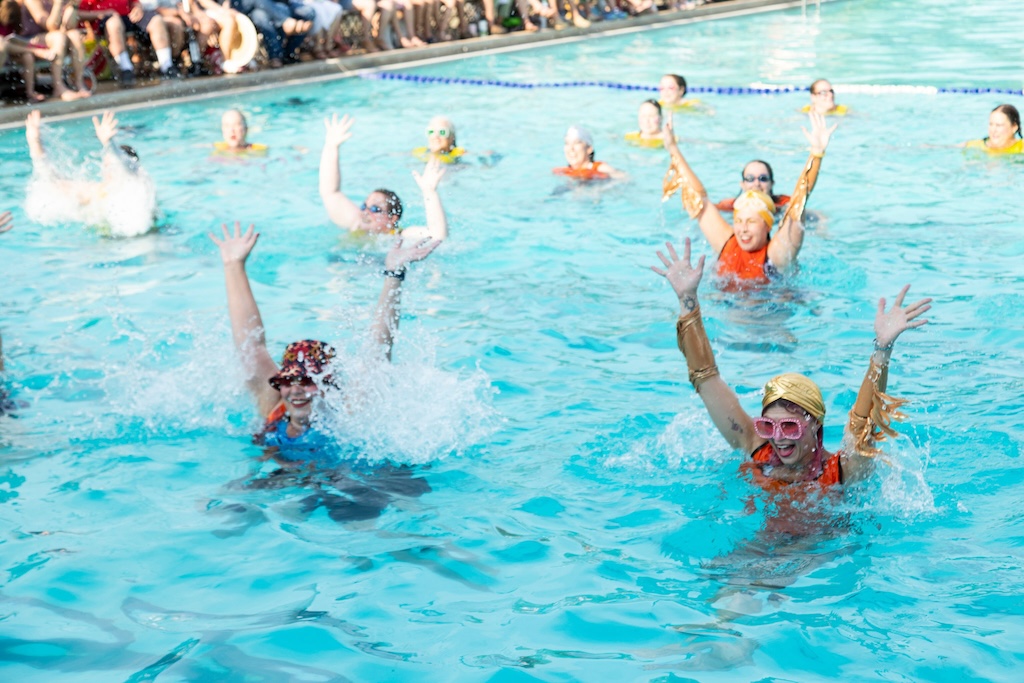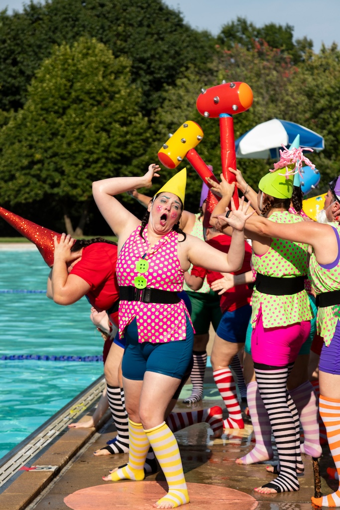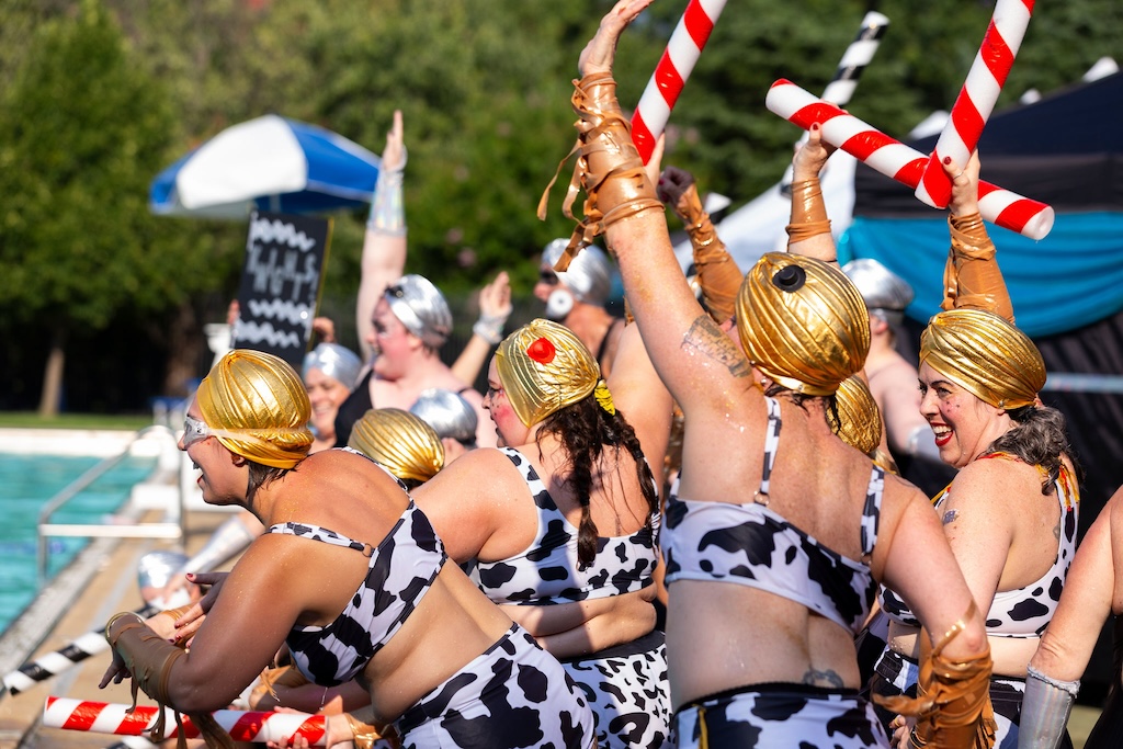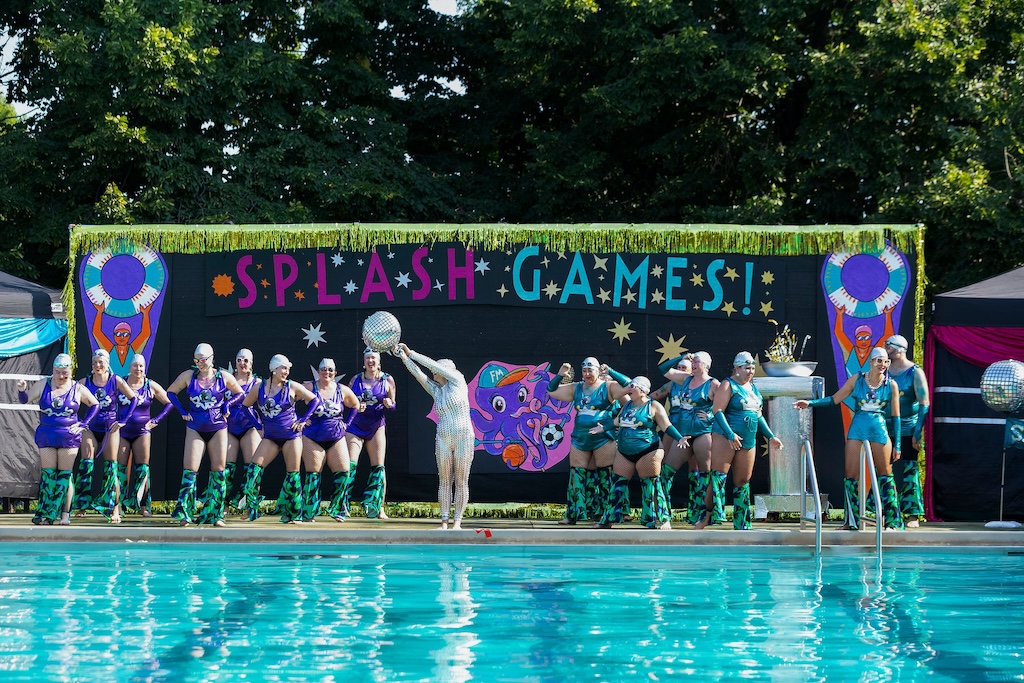 This year, Fluid Movement riffs on the Olympics with 2024 Splash Games: A Water Ballet of Imaginary Sports. The show promises, “The ecstasy of triumph, the anguish of losing! Unlike its bigger sister, the Olympics, Baltimore’s very own Splash Games covers a more esoteric assemblage of made-up sports where not only is skill, athleticism, and competition very important, but also glitter, puns, silliness, and love. Here the choreography, makeup, and costuming are as much a part of the sport as the game itself.”