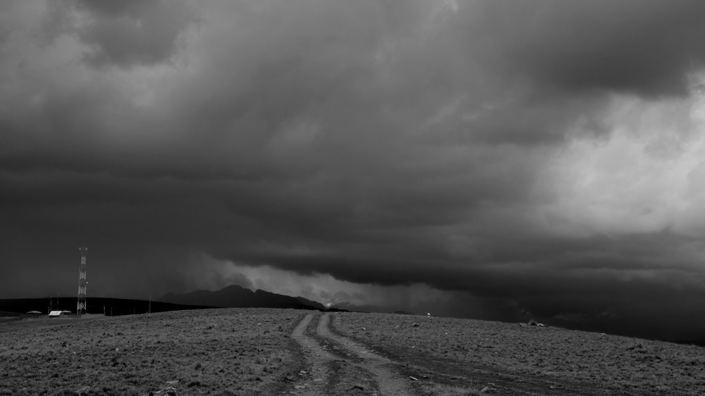 Human presence feels, here, fragile, arbitrary and provisional. Five tiny figures manipulate wheelbarrows among unexplained heaps of stone. A hatted figure sits in a car, as raindrops snake down the windows. Gradually, though, we approach the city. Honks and beeps imply traffic—but any larger context, and any clear sense of destination, is withheld. Instead, in an increasingly rapid series of shots, we see other figures inside vehicles. Some wear face masks which bow and crinkle with their breaths; another wears a top that’s decorated with images of llamas. The natural world, again, is othered. And the metropolis, in a closing shot, is nothing but a twinkling series of lights: an ethereal spectacle that seems somehow less than real.