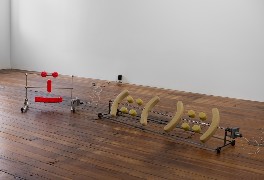 Postscript: When I visited Catala’s show in early July, I felt that the noisy, monotonous respirations of his exhibition perfectly suited the summer of 2024, with its stalemated presidential rematch, tech bro bravado, and oppressive, record-breaking heat. Sitting down to write about the exhibition a couple of weeks later, I am moved by how that context has been disrupted. While the inertia of big systems entwined with language—technology, economics, politics, etc.—remains formidable, something historic happened with the withdrawal of President Biden from the upcoming election and the candidacy of Vice President Harris.