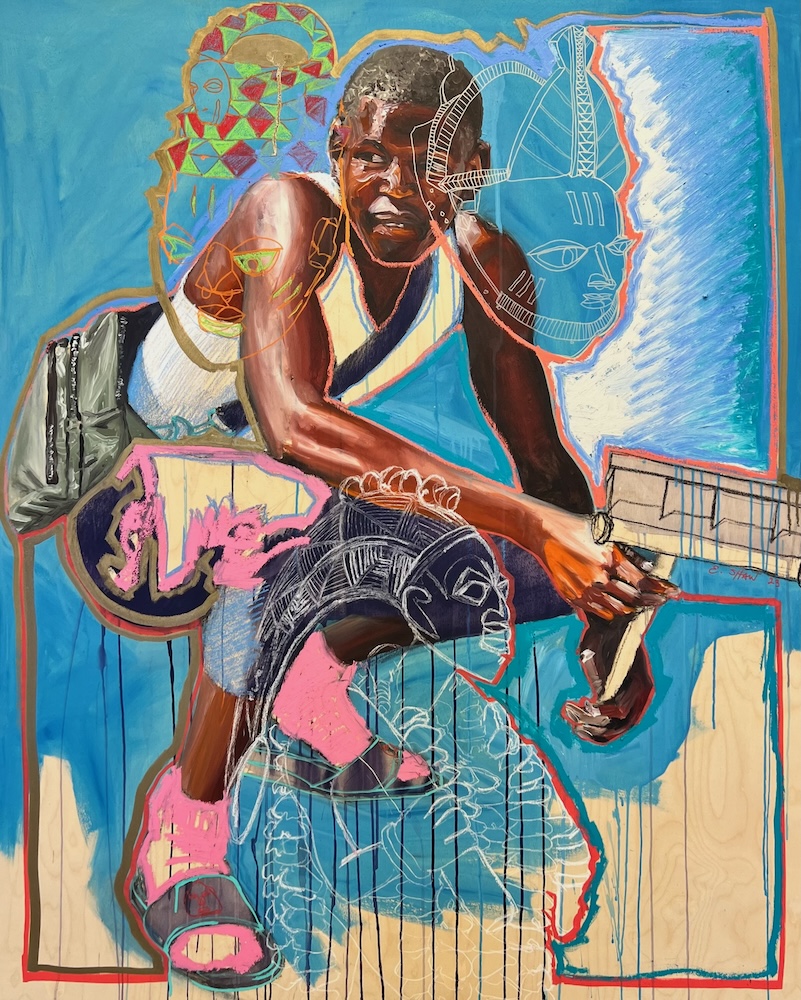 Jessy DeSantis, raised in a Nicaraguan household in Miami, Florida, and now residing in Baltimore City, is a self-taught artist creating meaningful, vibrant work. Their paintings’ stark contrast of vibrant color and white space draws the viewer into their subjects. They are inspired by their connection to nature, food, family, and their Central American roots. Their paintings, which often depict birds, are more than just visually beautiful; many also carry the intention of a story to be told. DeSantis seeks to pass on these stories of heritage and truth, with all their complexities, to their children and future generations. The artist states that as they grow and evolve through life, their art will evolve and shift with them. They are currently mastering the art of portraiture and storytelling through a cultural and historical lens.
