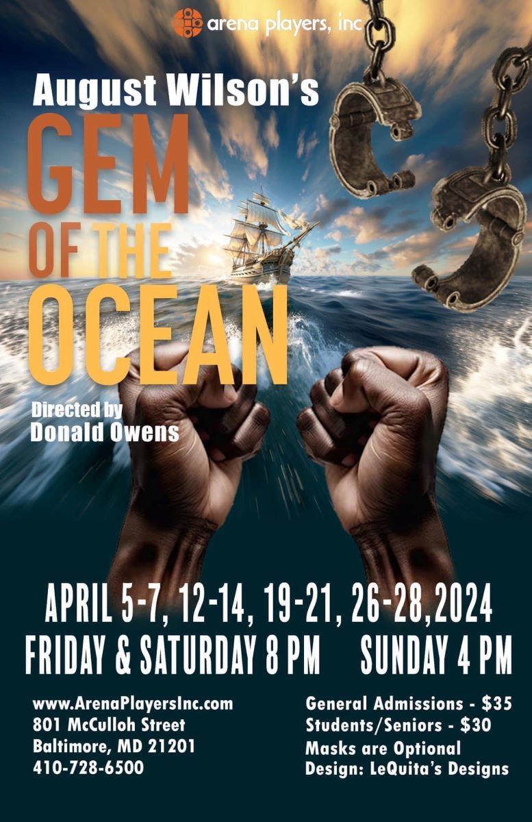 Flyer from Arena Players' Gem of the Ocean which began the August Wilson Century Cycle in Baltimore, spring, 2024